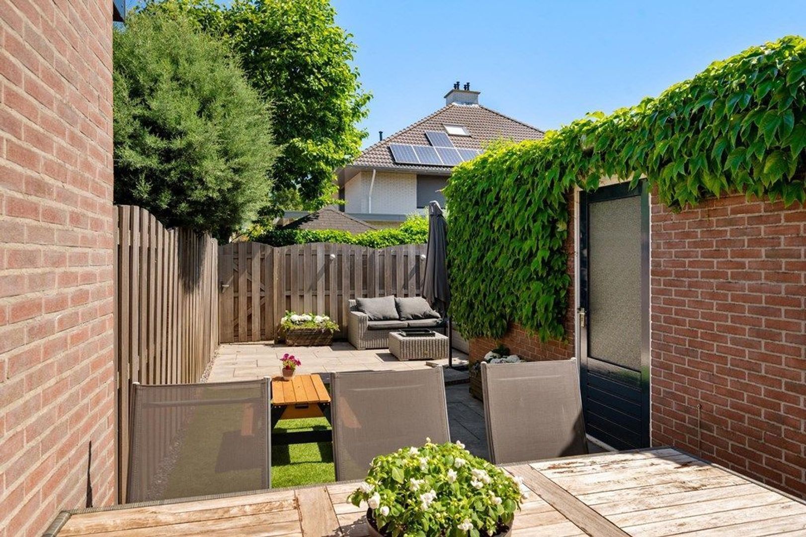 Verder beschikt de achtertuin over kunstgras vrijstaande stenen schuur en heeft schaduw en zonplekken.