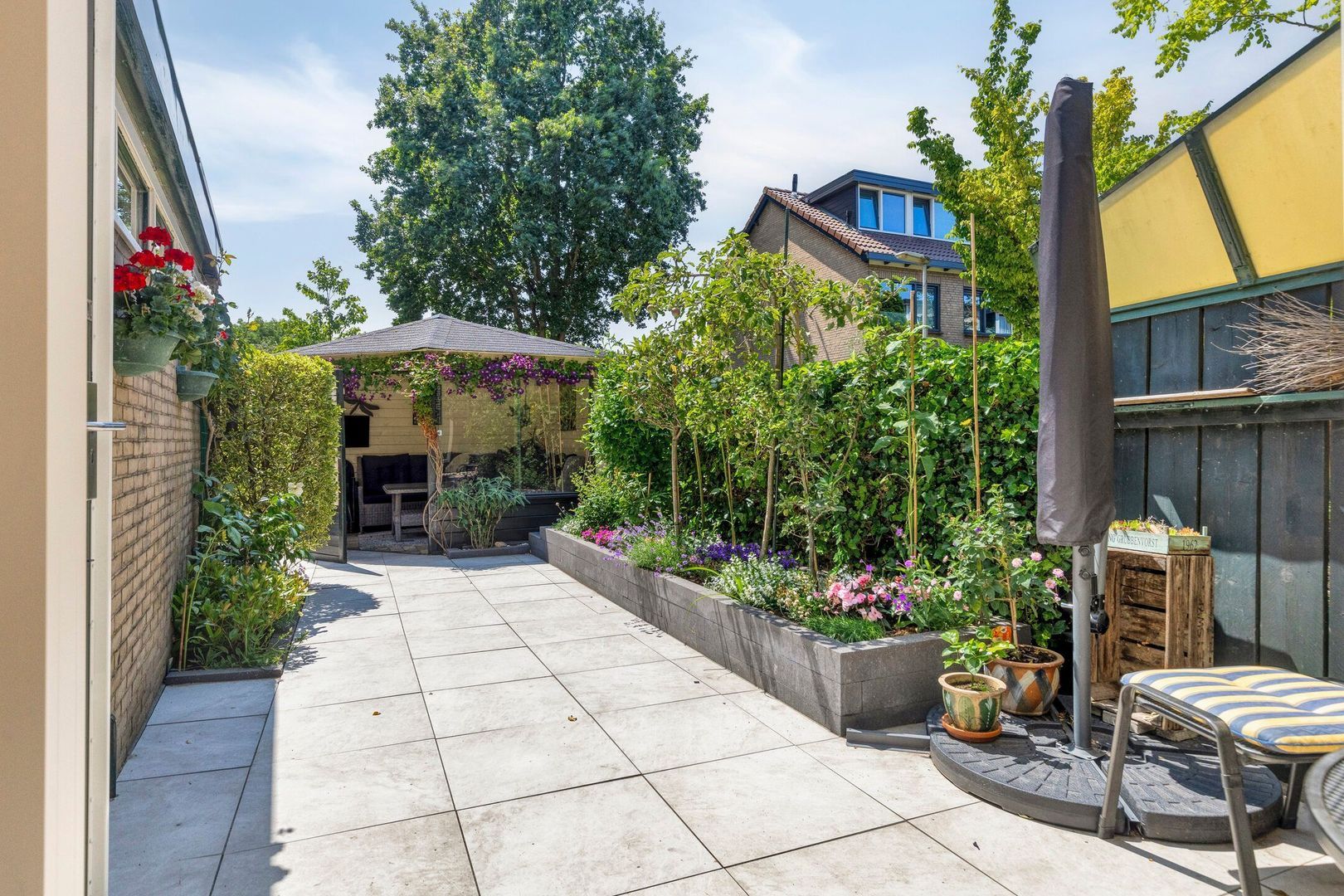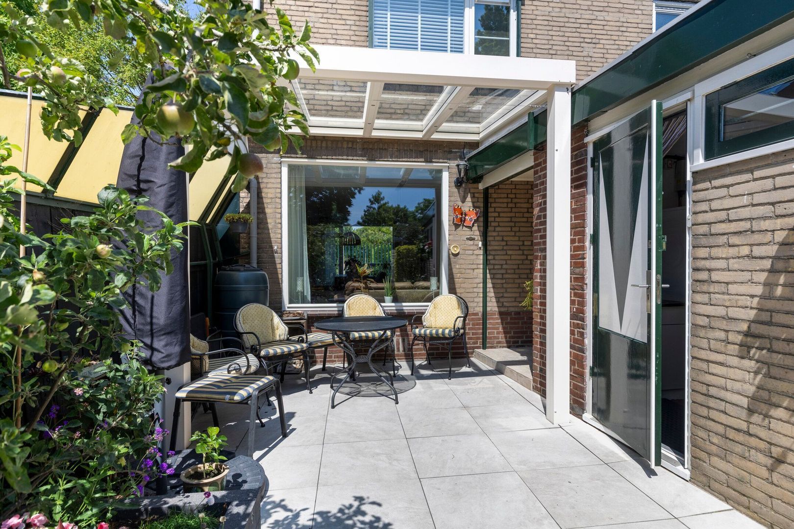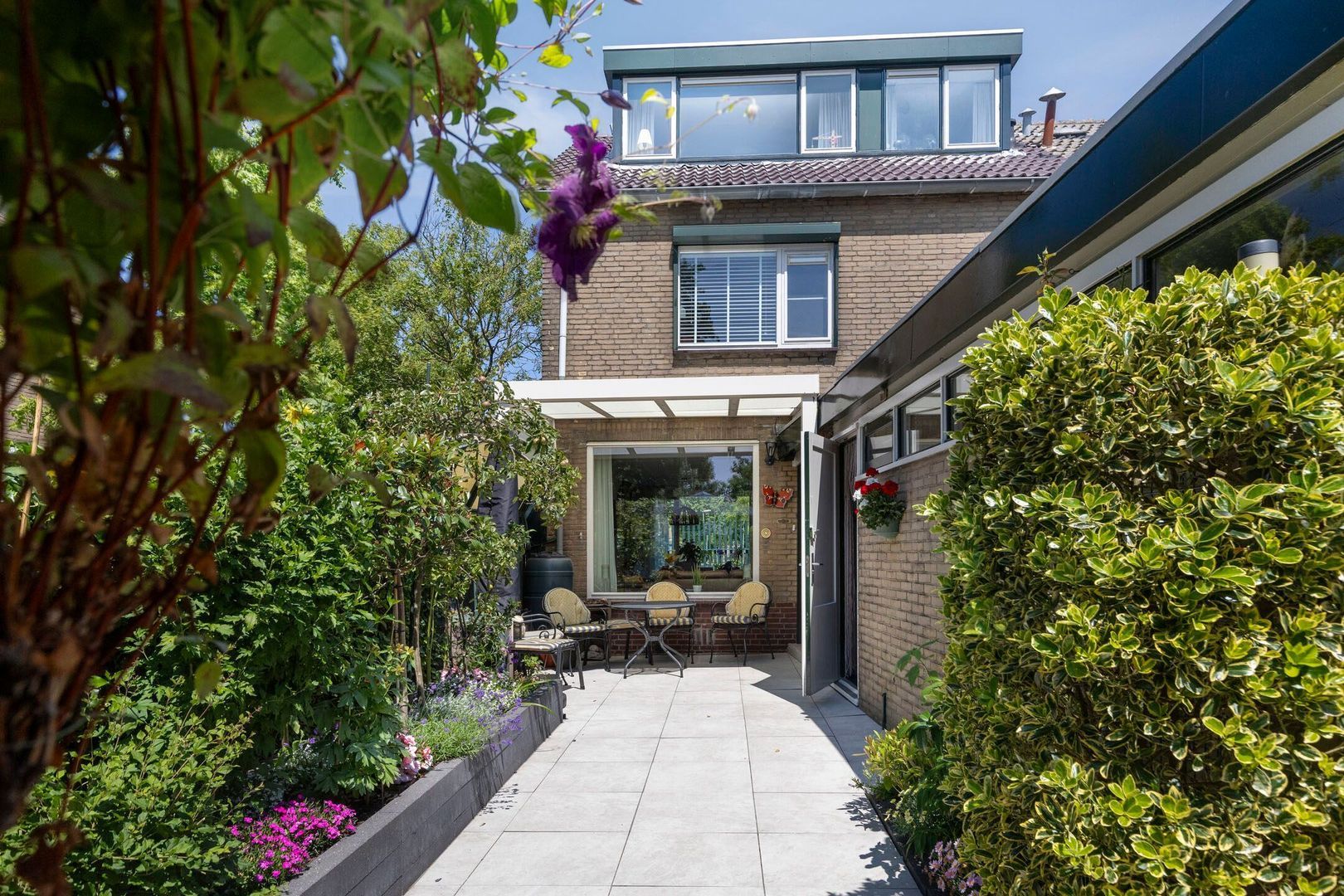 De royale, op het zuidwesten gelegen voortuin is betegeld en biedt parkeergelegenheid op eigen terrein voor 1 auto. De voortuin beschikt over een overkapping en een serre.