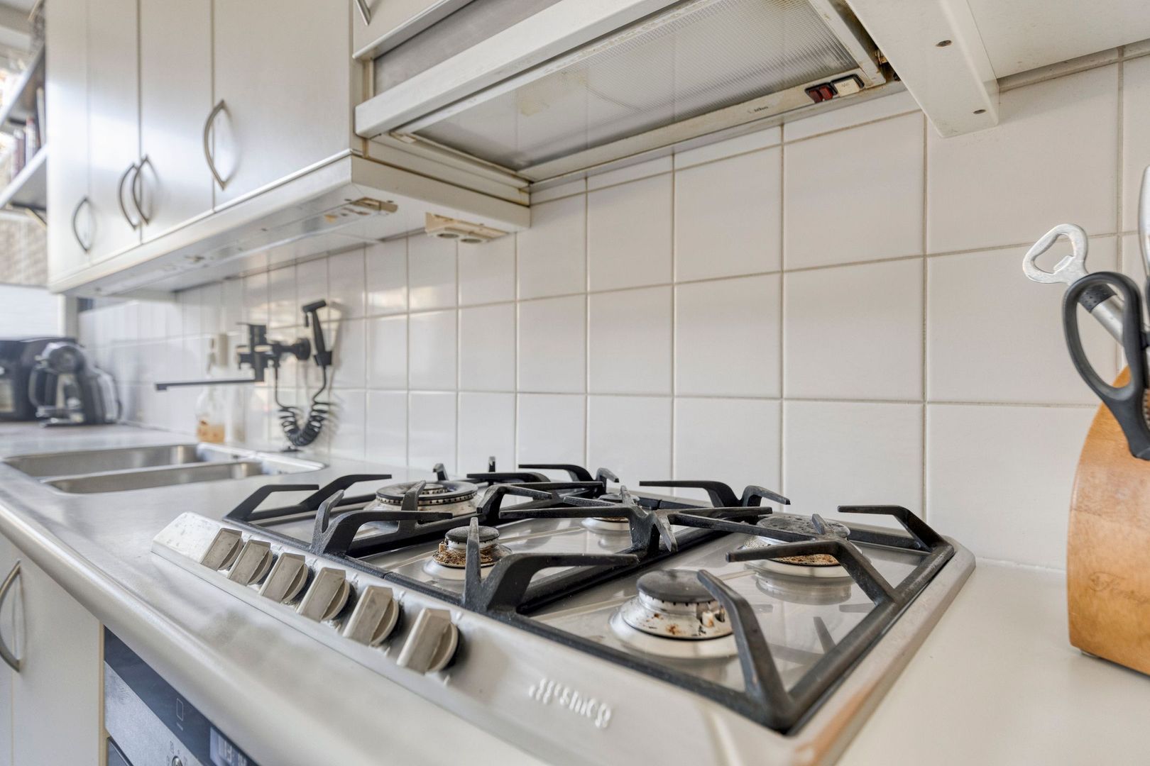 De dichte keuken is voorzien van diverse inbouw apparatuur zoals, spoelbak met mengkraan, vaatwasmachine, oven, magnetron en een 5 -pits gasfornuis.