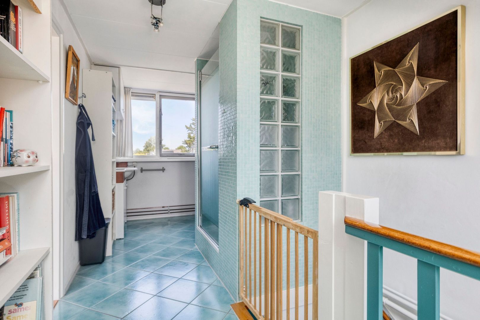 Overloop met twee dakkapellen, knieschotten, extra douche en wastafel met meubel, opstelplaats voor de cv ketel en mechanische ventilatie en geeft toegang tot de slaapkamer.