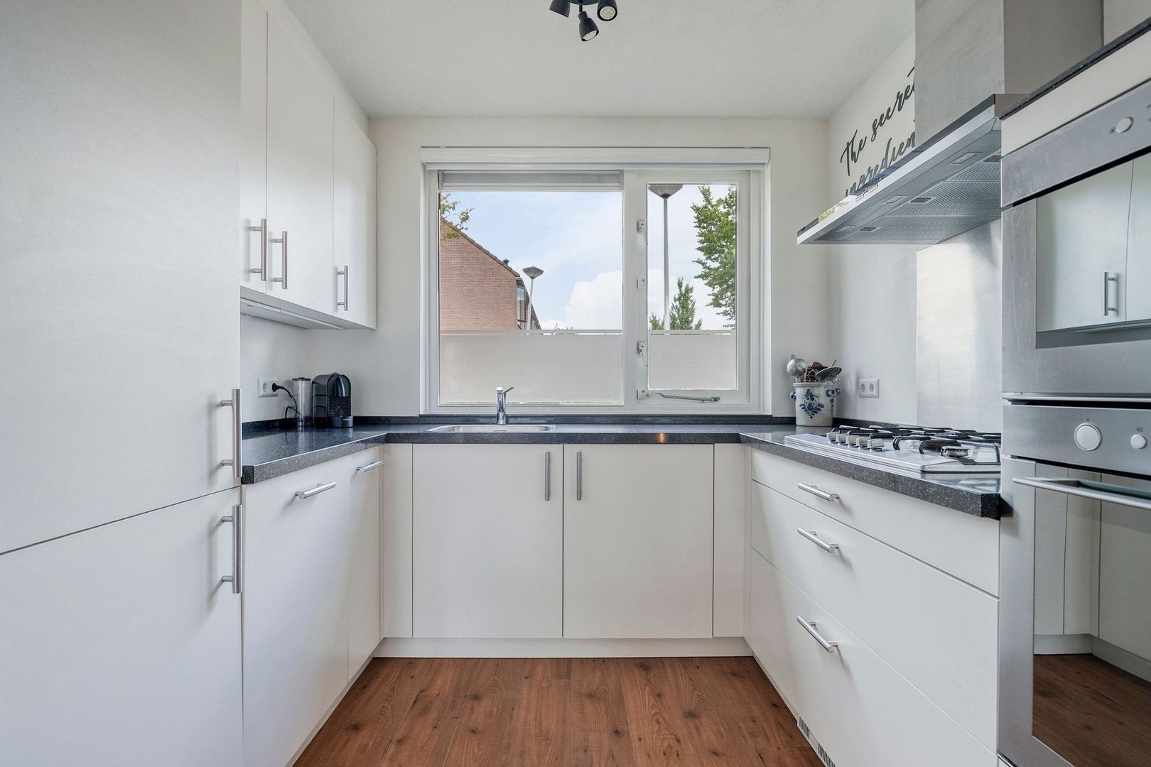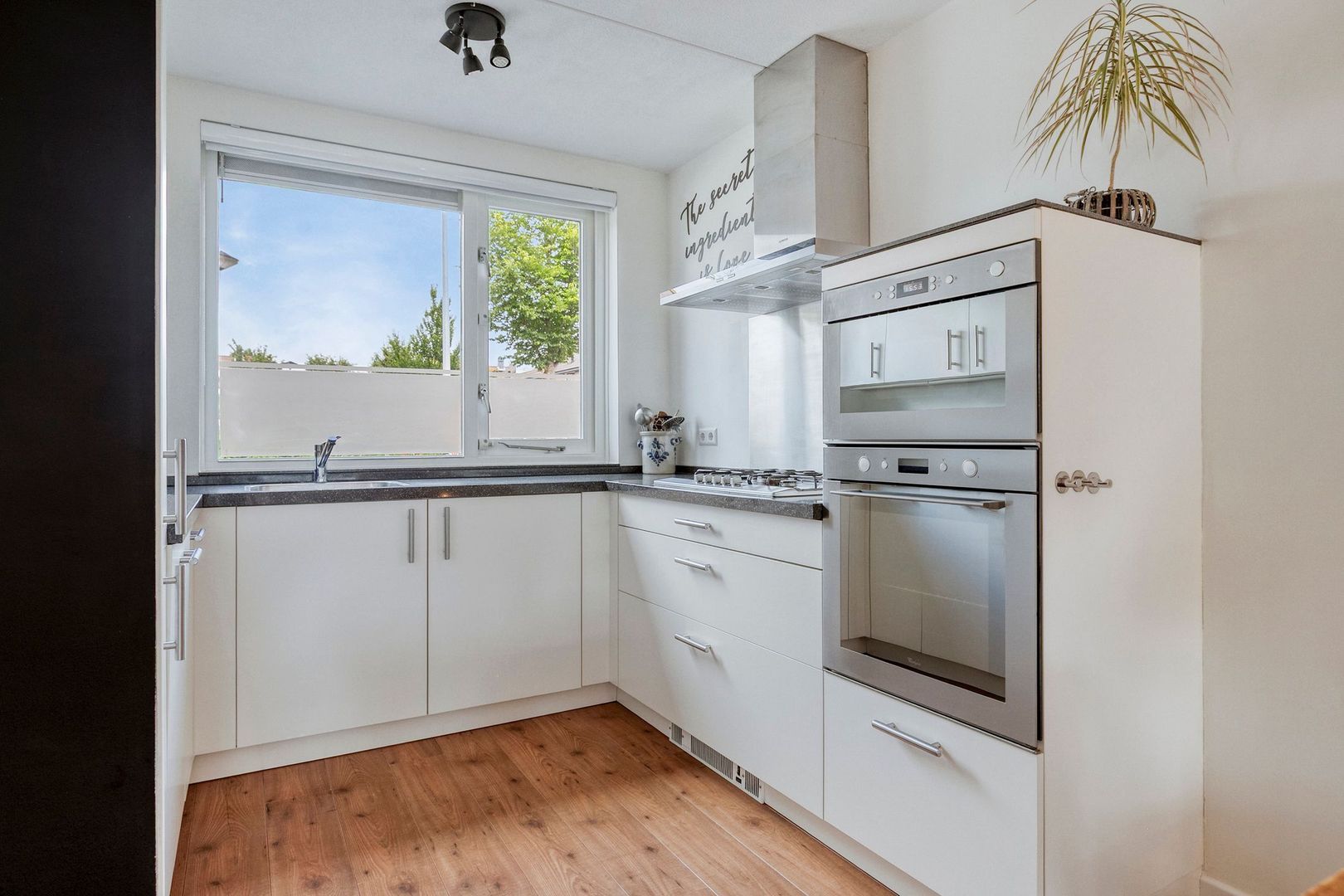 Aan de voorzijde van de woning bevindt zich de moderne, open keuken. Deze is uitgevoerd met een natuurstenen werkblad en compleet voorzien van inbouwapparatuur, waaronder een 5-pits gasfornuis, afzuigkap, oven, magnetron, vaatwasser en een koel-/vriescombinatie – ideaal voor de kookliefhebber.