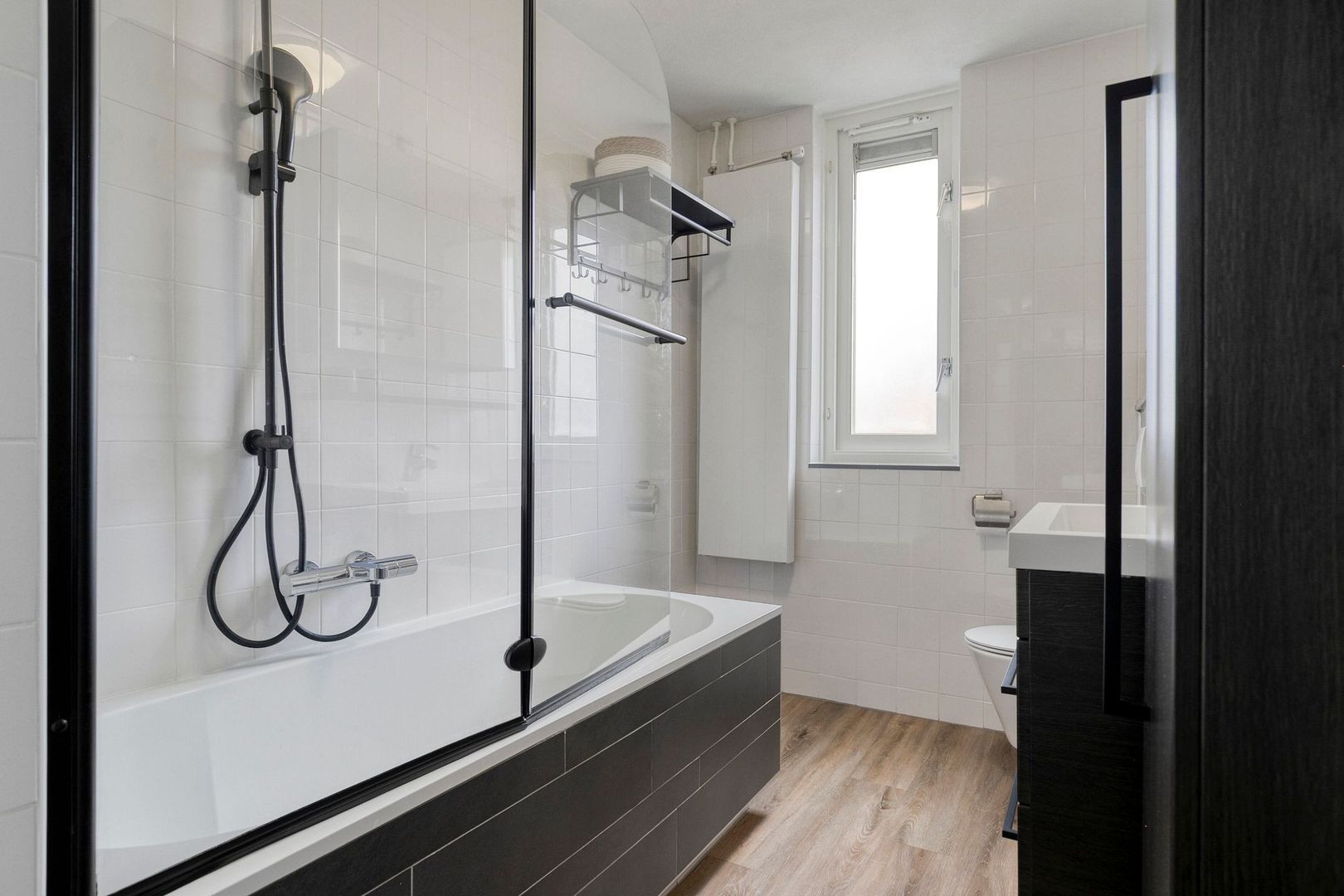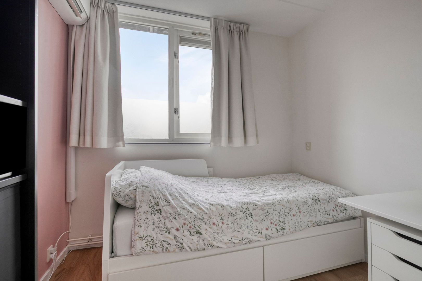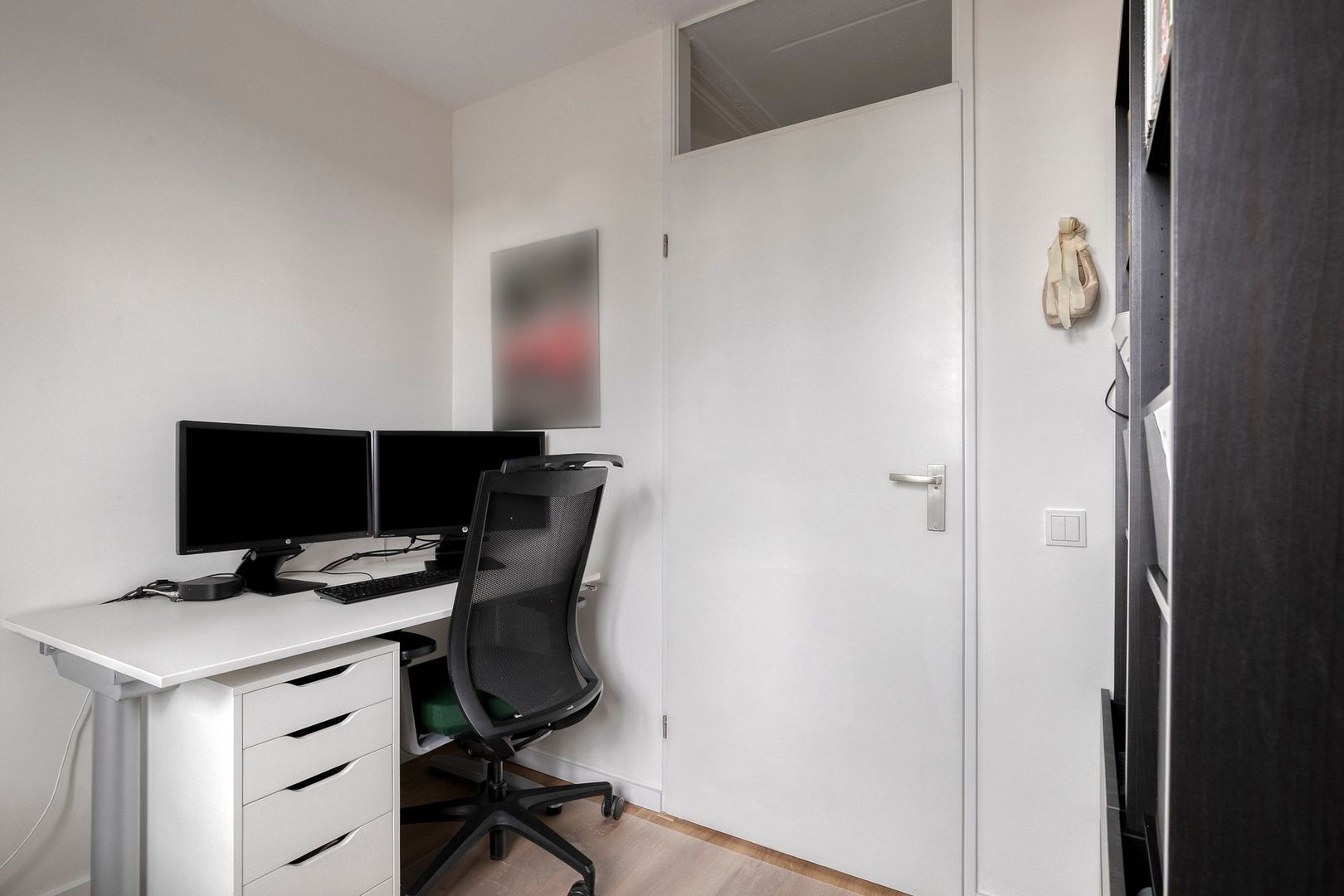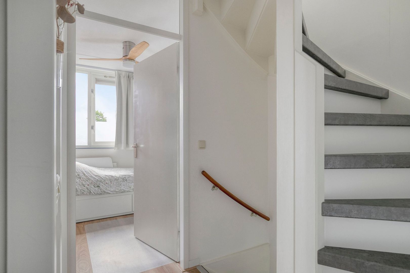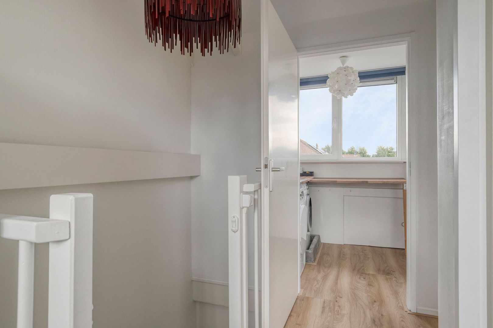 De tweede verdieping beschikt over een ruime overloop en een aparte waskamer met aansluitingen voor wasmachine, droger en cv-ketel. Vanuit de overloop bereikt u de vierde, lichte slaapkamer met een dakkapel over de volledige daklengte airconditioning en handige opbergmogelijkheden achter de knieschotten.