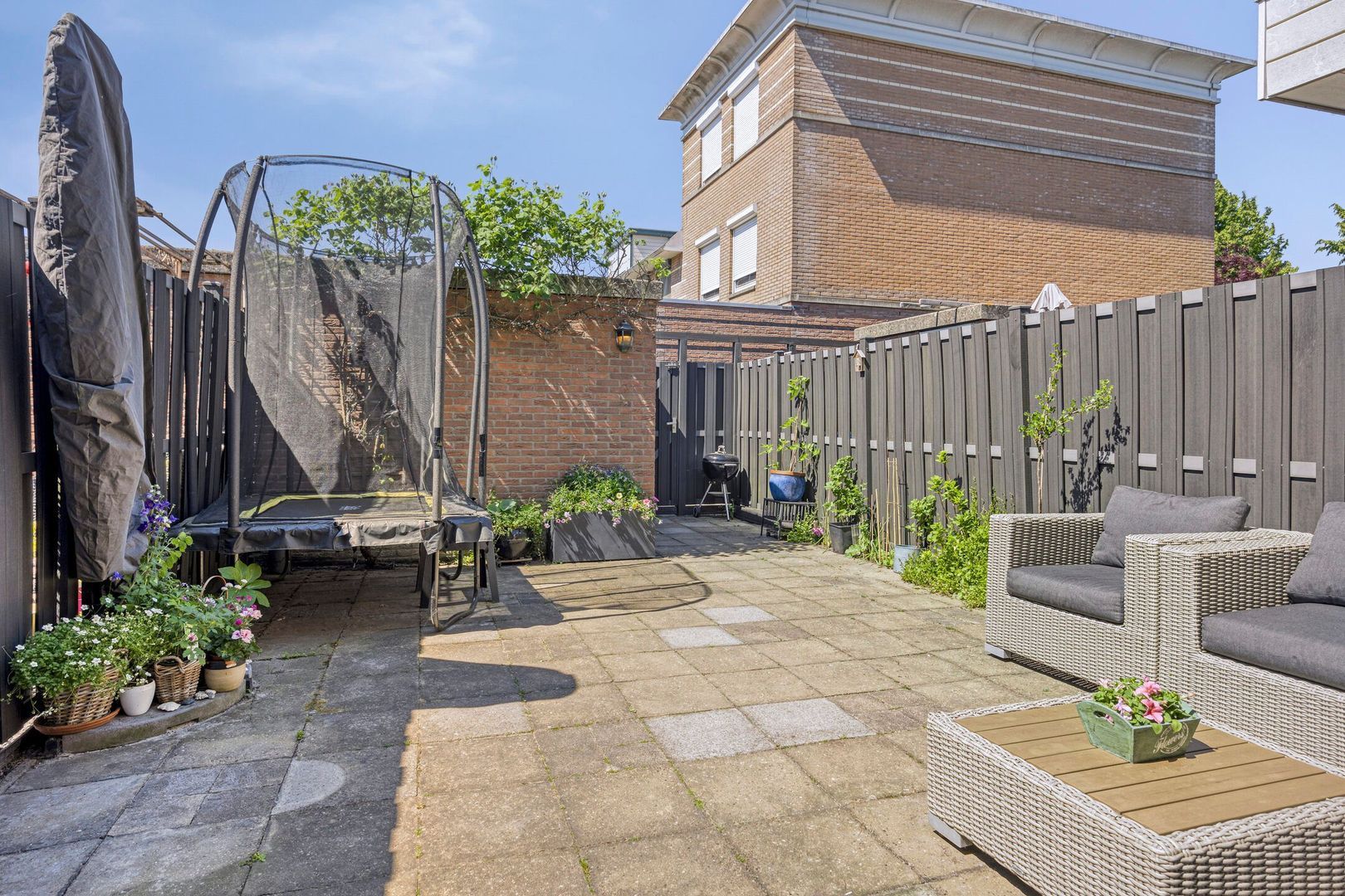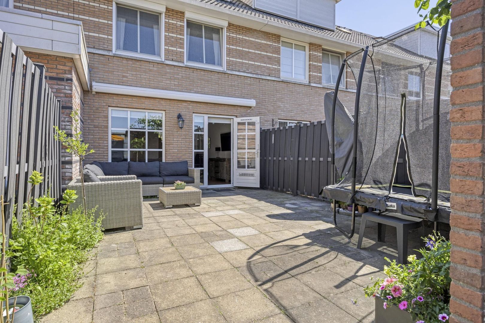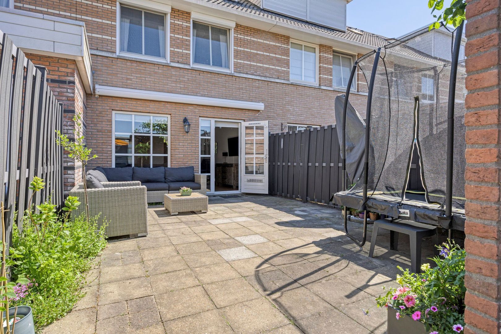 - Zonnige achtertuin op het westen met berging en achterom;