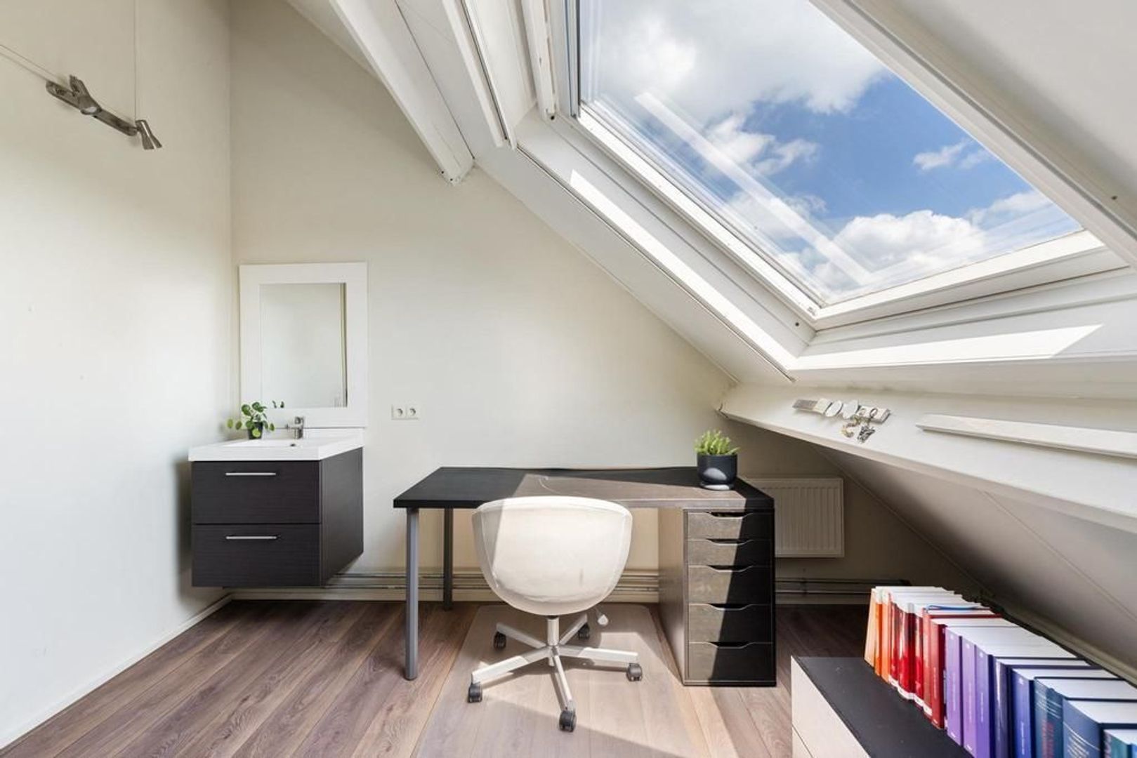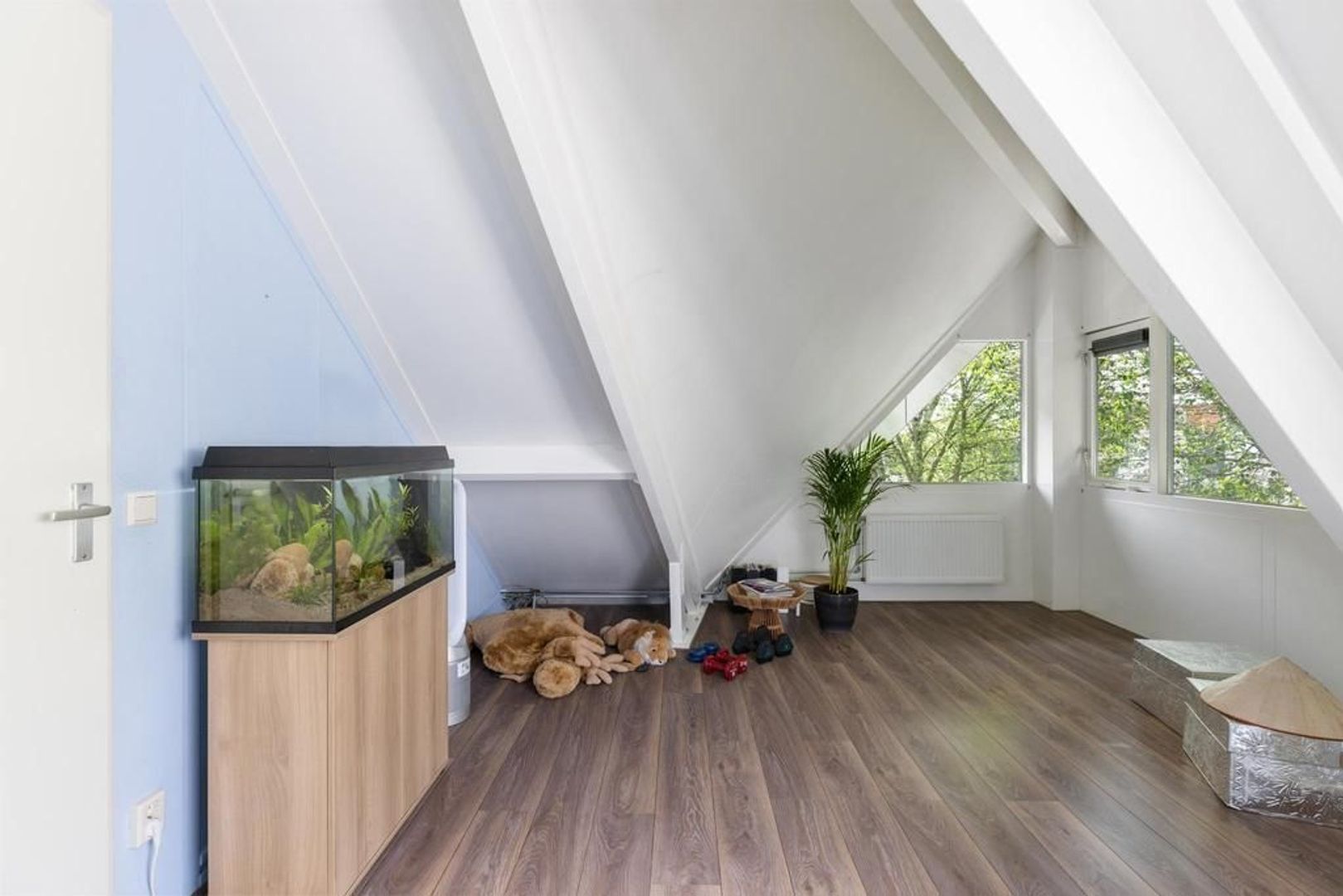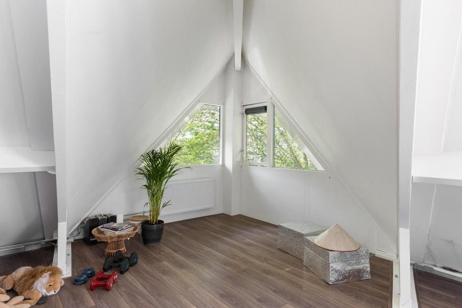 Slaapkamer 4, aan de voorzijde met dakraam, wastafel en speelse hoeken en hoge nok.