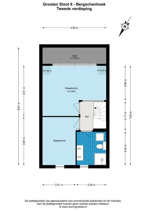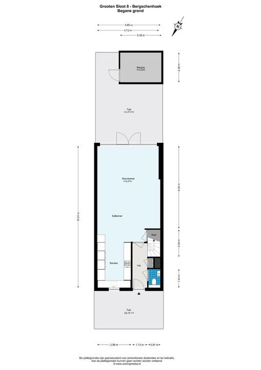 De woning is conform de Branchebrede Meetinstructie (BBMI) opgemeten. De Meetinstructie is bedoeld om een meer eenduidige manier van meten toe te passen voor het geven van een indicatie van de gebruiksoppervlakte. De Meetinstructie sluit verschillen in meetuitkomsten niet volledig uit, door bijvoorbeeld interpretatieverschillen, afrondingen of beperkingen bij het uitvoeren van de meting.