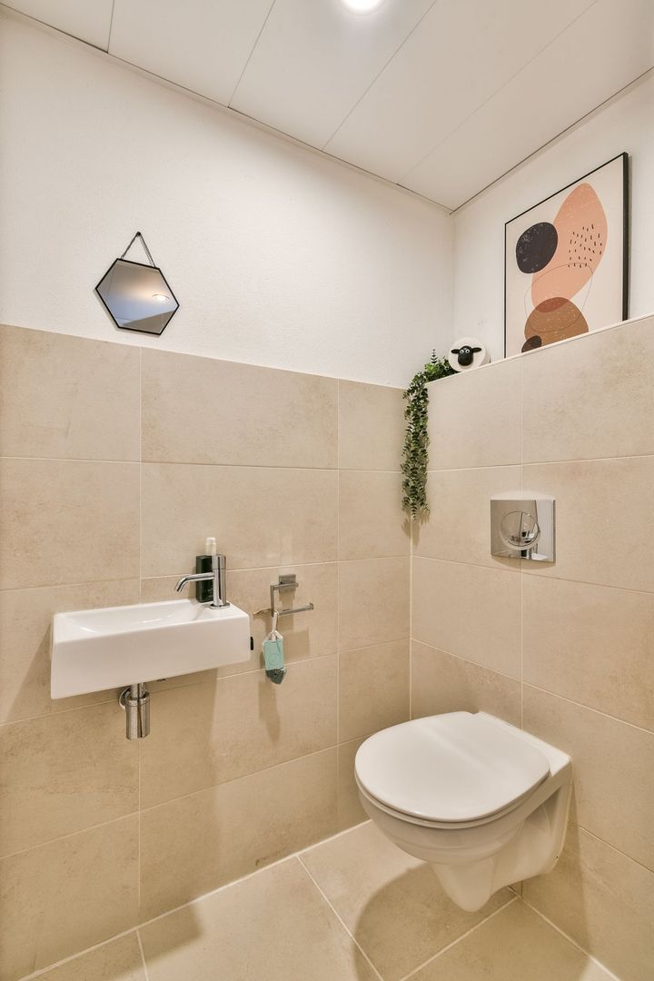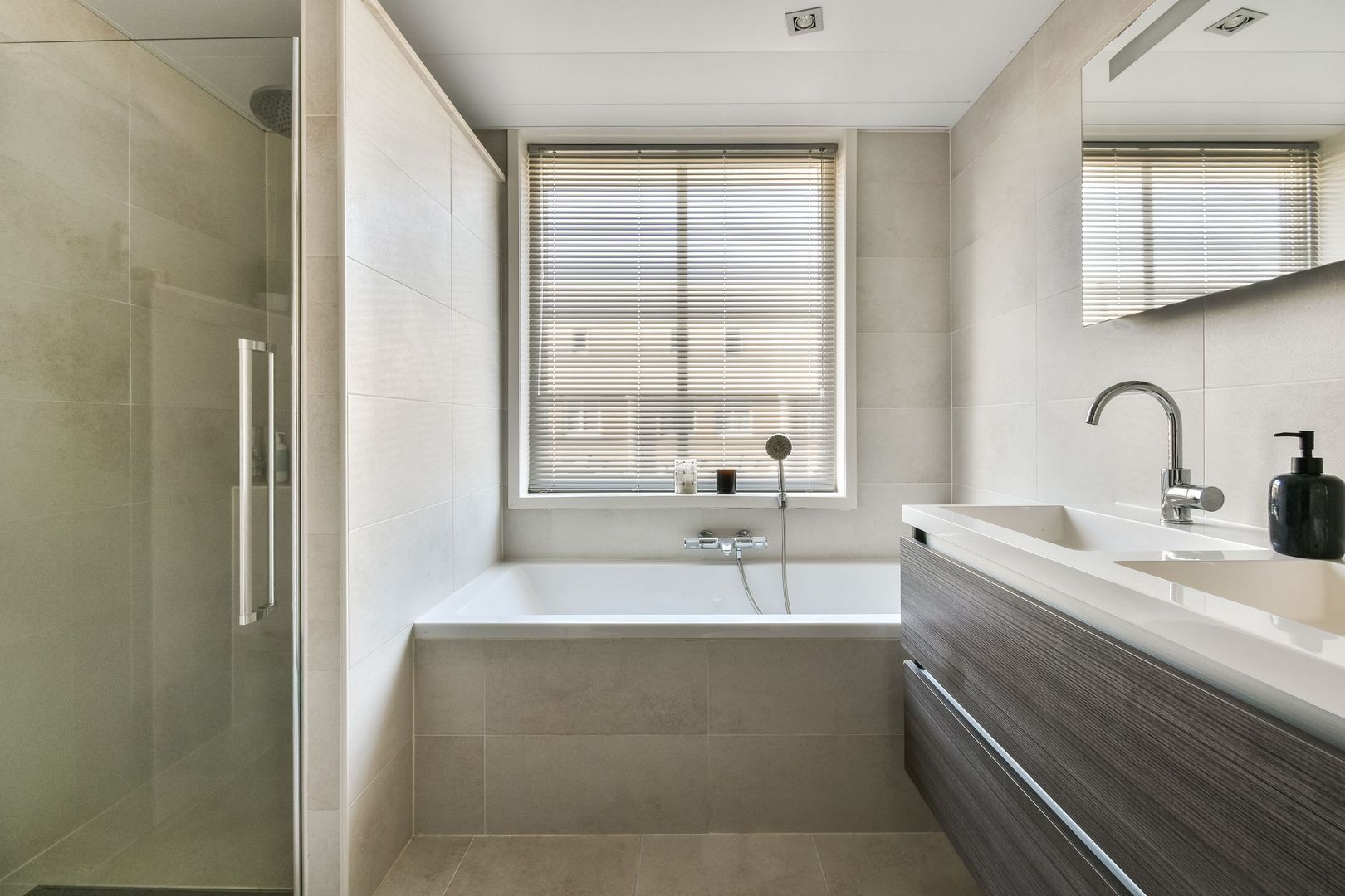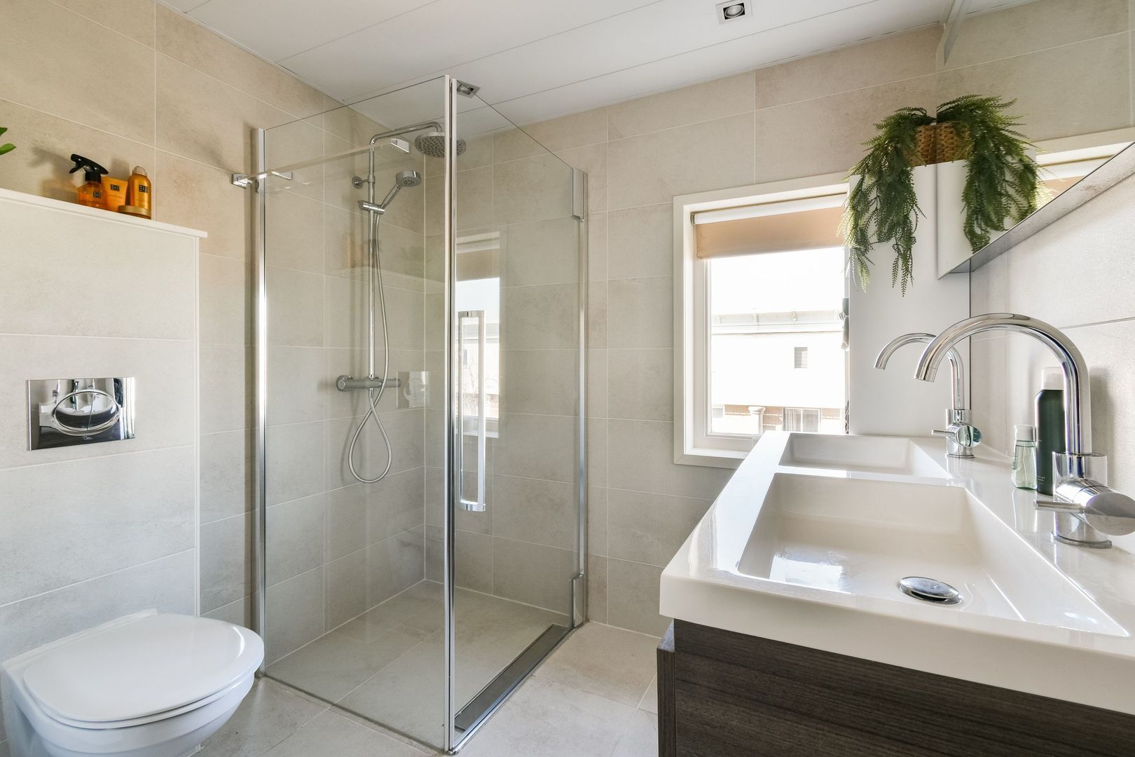 De tweede badkamer is uitgerust met een douche, toilet, elektrische vloerverwarming en wastafel. Hier bevinden zich tevens de aansluitingen voor de wasmachine en droger.