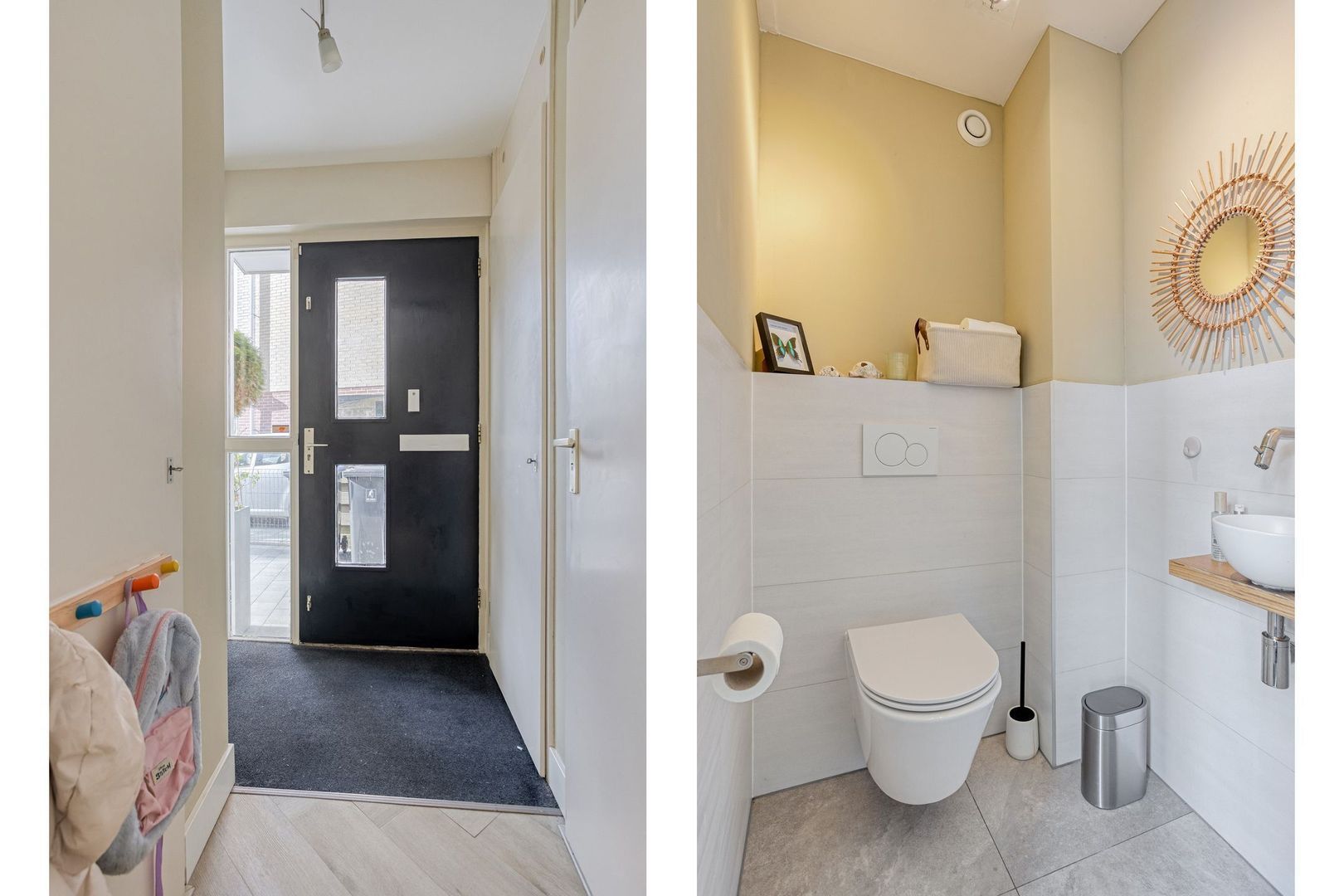 Hal/entree met meterkast, trapkast/garderobe en toiletruimte.