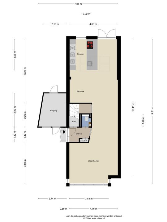 De woning is conform de Branchebrede Meetinstructie (BBMI) opgemeten. De Meetinstructie is bedoeld om een meer eenduidige manier van meten toe te passen voor het geven van een indicatie van de gebruiksoppervlakte. De Meetinstructie sluit verschillen in meetuitkomsten niet volledig uit, door bijvoorbeeld interpretatieverschillen, afrondingen of beperkingen bij het uitvoeren van de meting.