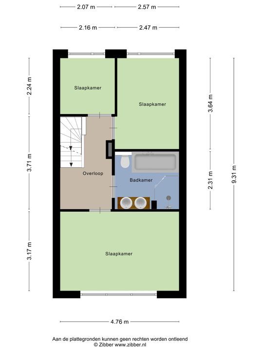 Slaapkamer 3: eveneens aan de achterzijde (ca. 2.24 x 2.16 m)
