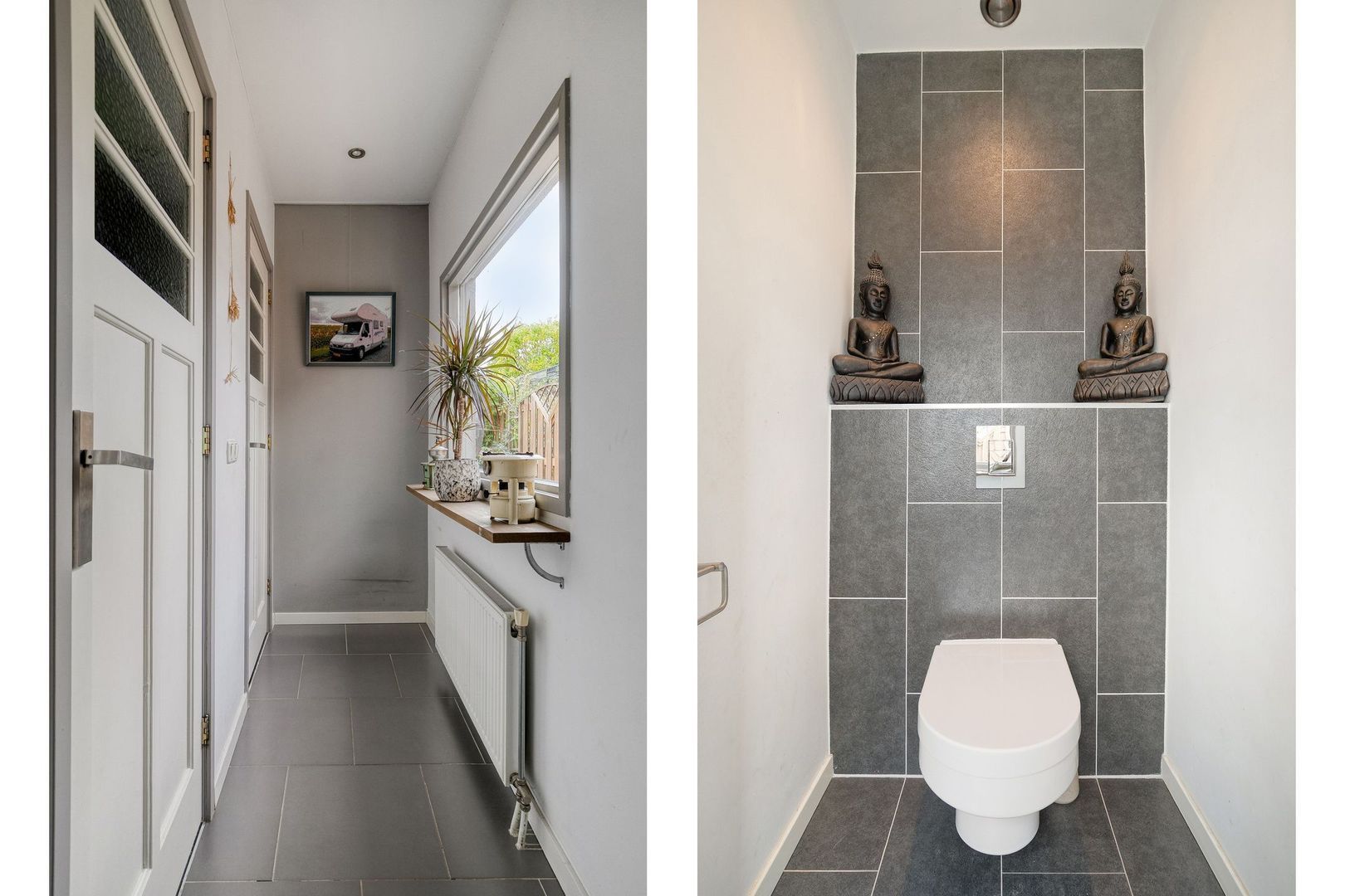 Entree, hal die toegang geeft tot de woonkamer en de trapopgang naar de eerste verdieping.
