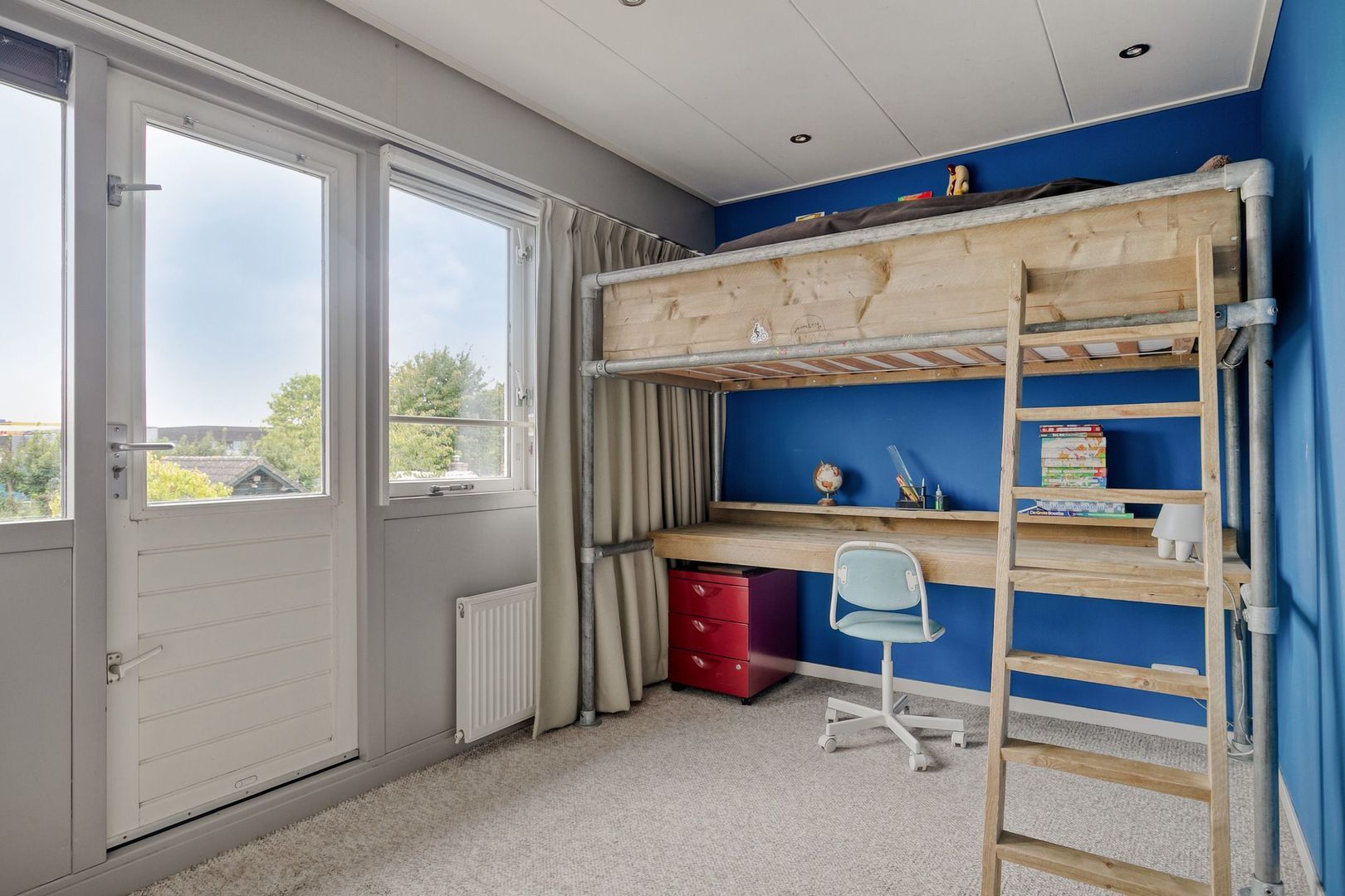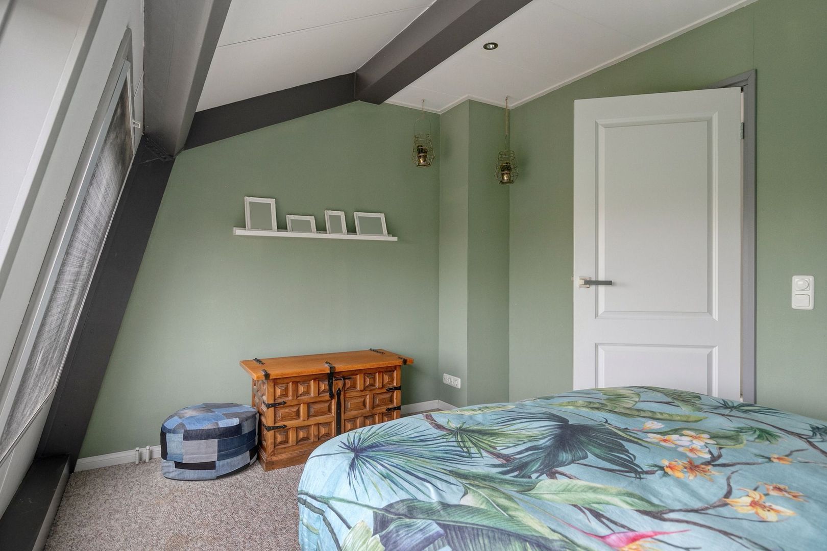 Slaapkamer 1 (ca. 2.27 m x 3.99 m) , gelegen aan de achterzijde, met openslaande deuren naar het dak.
