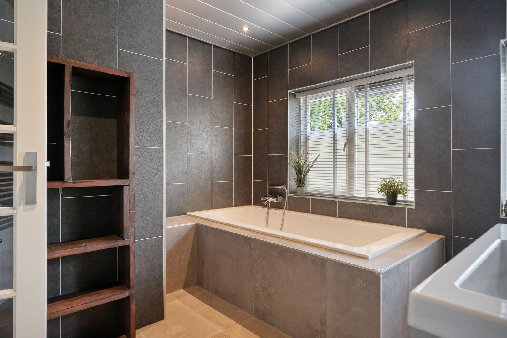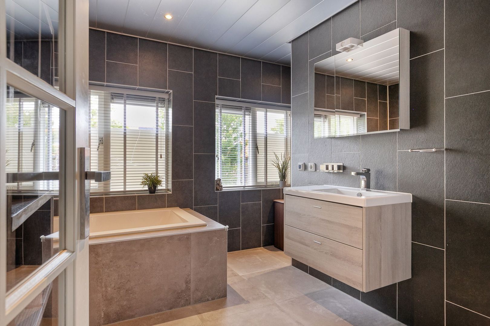 De badkamer is voorzien van een ligbad, wastafel, handdoekradiator, tweede toilet, douche en vloerverwarming.