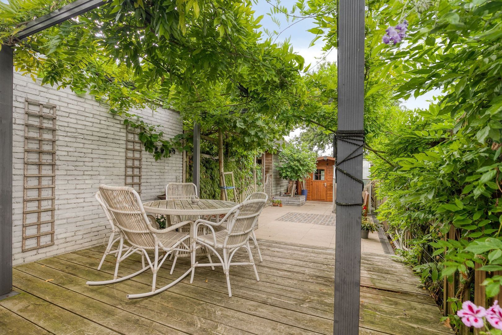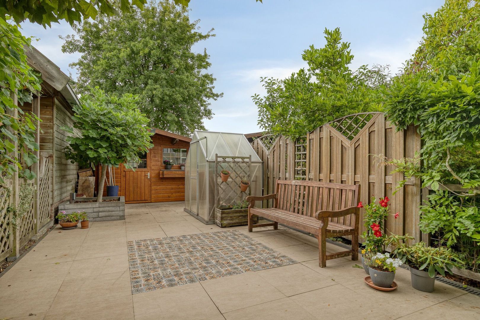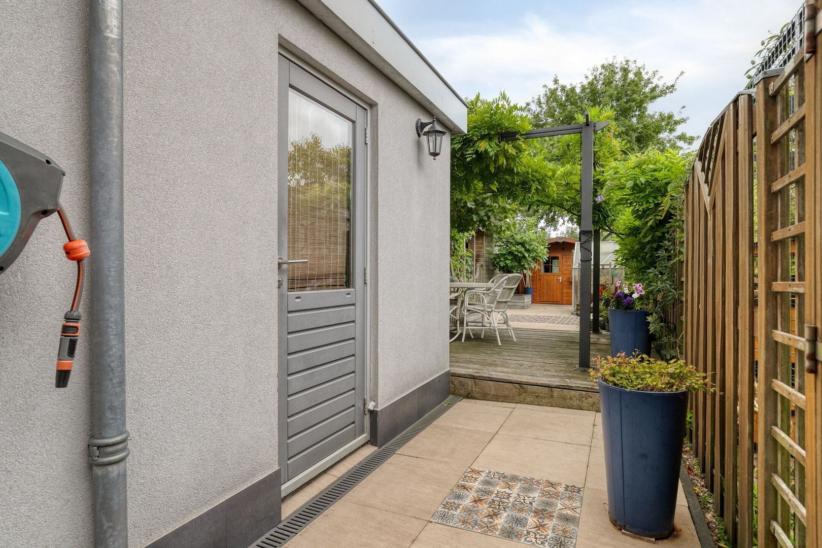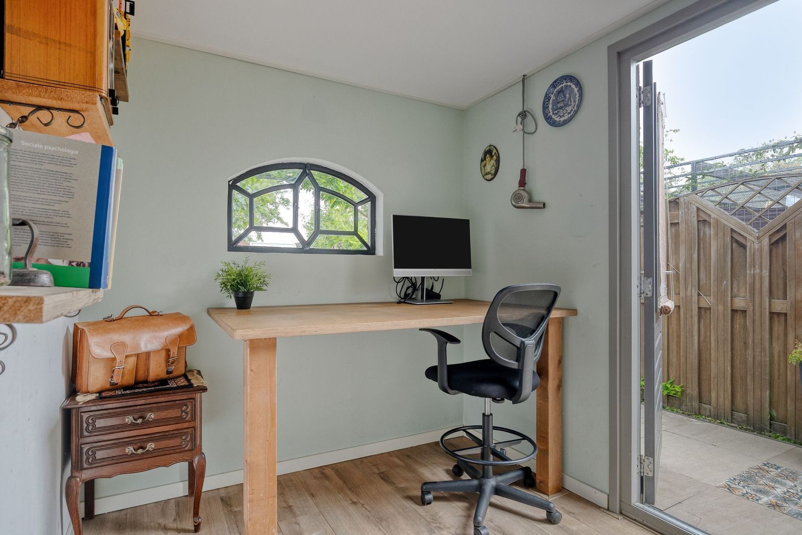 De diepe achtertuin op het zuidwesten is een plek om het hele jaar door te genieten van de zon. Hier vind je een multifunctionele ruimte die ideaal te gebruiken is als kantoor, praktijkruimte of hobbyruimte. Ook bevindt zich hier de cv-ketel. Verder staat er achterin de tuin een ruime berging voor fietsen en tuingereedschap én een kas, perfect om zelf groenten, kruiden of bloemen te kweken.