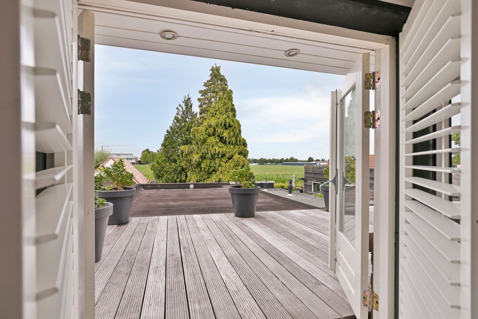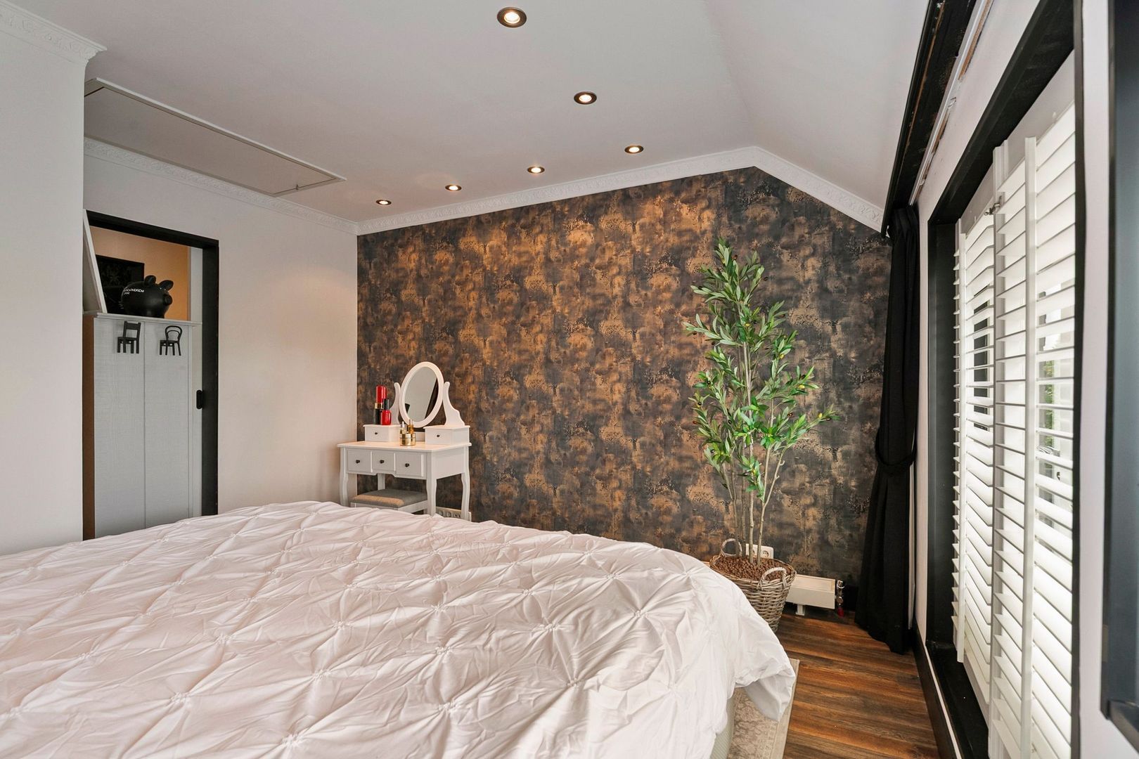 Slaapkamer 2 ligt aan de achterzijde en geeft toegang tot het dakterras. In deze kamer bevindt zich tevens het luik naar de vliering.