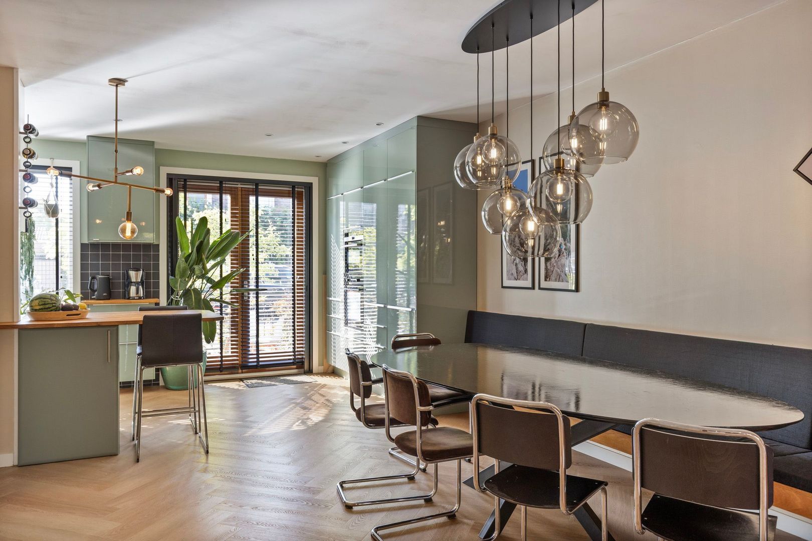 De luxe keuken is aan de voorzijde van de woning gelegen en is voorzien van diverse inbouwapparatuur, waaronder een vaatwasser, afzuigkap, inductiekookplaat, combimagnetron en oven.
