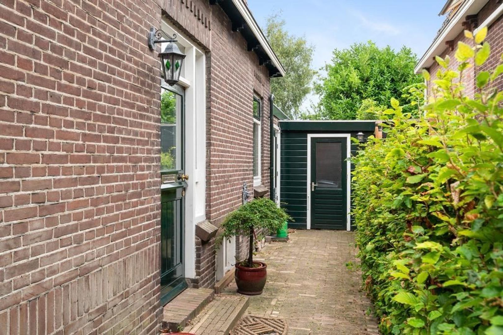Aan de rechterzijkant van het huis vind je de entree met toegang tot de woning, een deur naar de keuken en de aangebouwde houten berging.