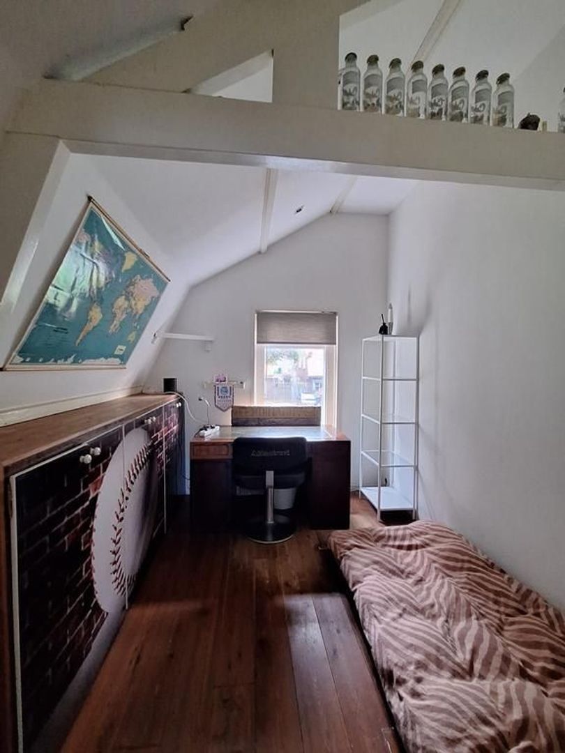 Slaapkamer 1, aan de voorkant, met vaste kast onder het schuine dak.