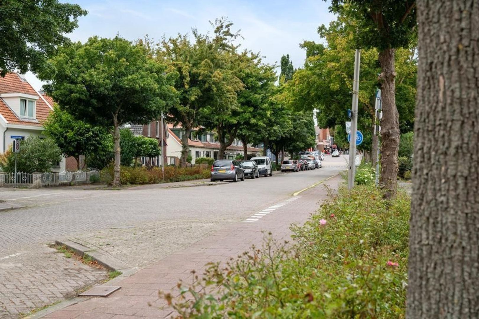 Grote voortuin met prachtige bomenparade en meer dan voldoende plek voor een ruime loungebank.