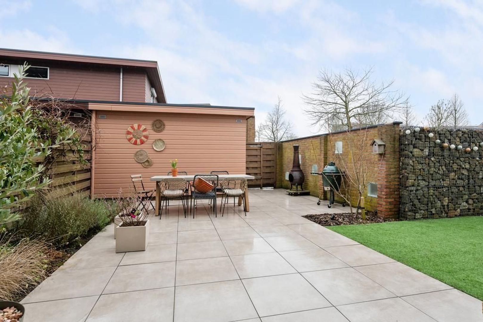 De nieuwe aangelegde (2024) achtertuin is gelegen op het zonnige zuidwesten en is voorzien van een houten berging en een achterom. De woning beschikt aan de achterzijde over een zonnescherm en zonnescreen.
