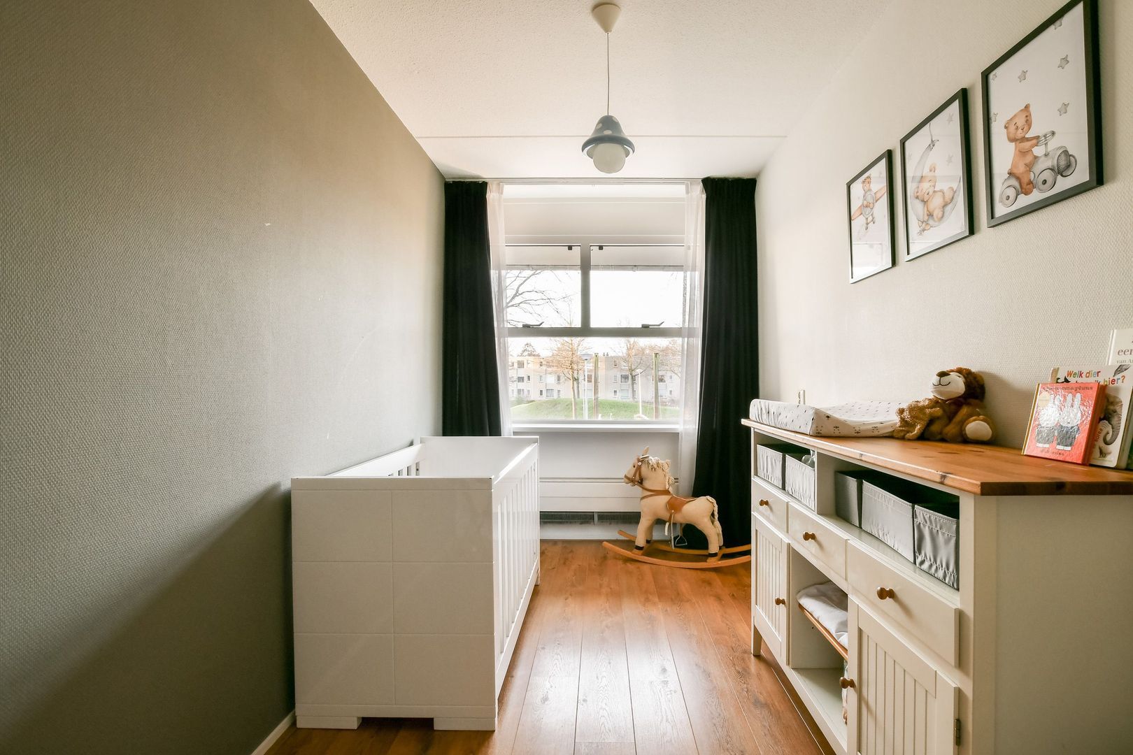 Slaapkamer 2,ruime slaapkamer met schuifpui naar een zonnig balkon met uitzicht over de singel.