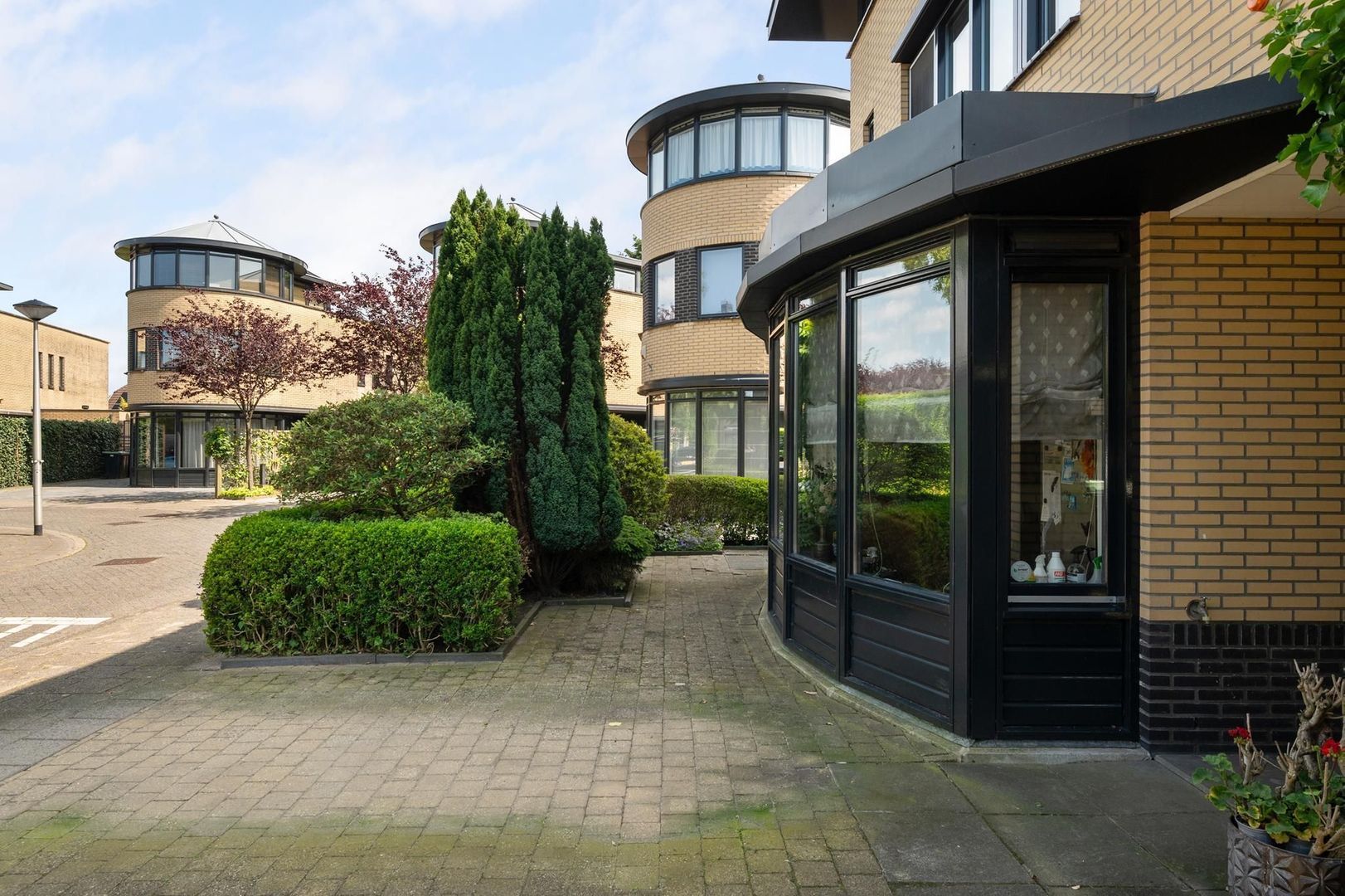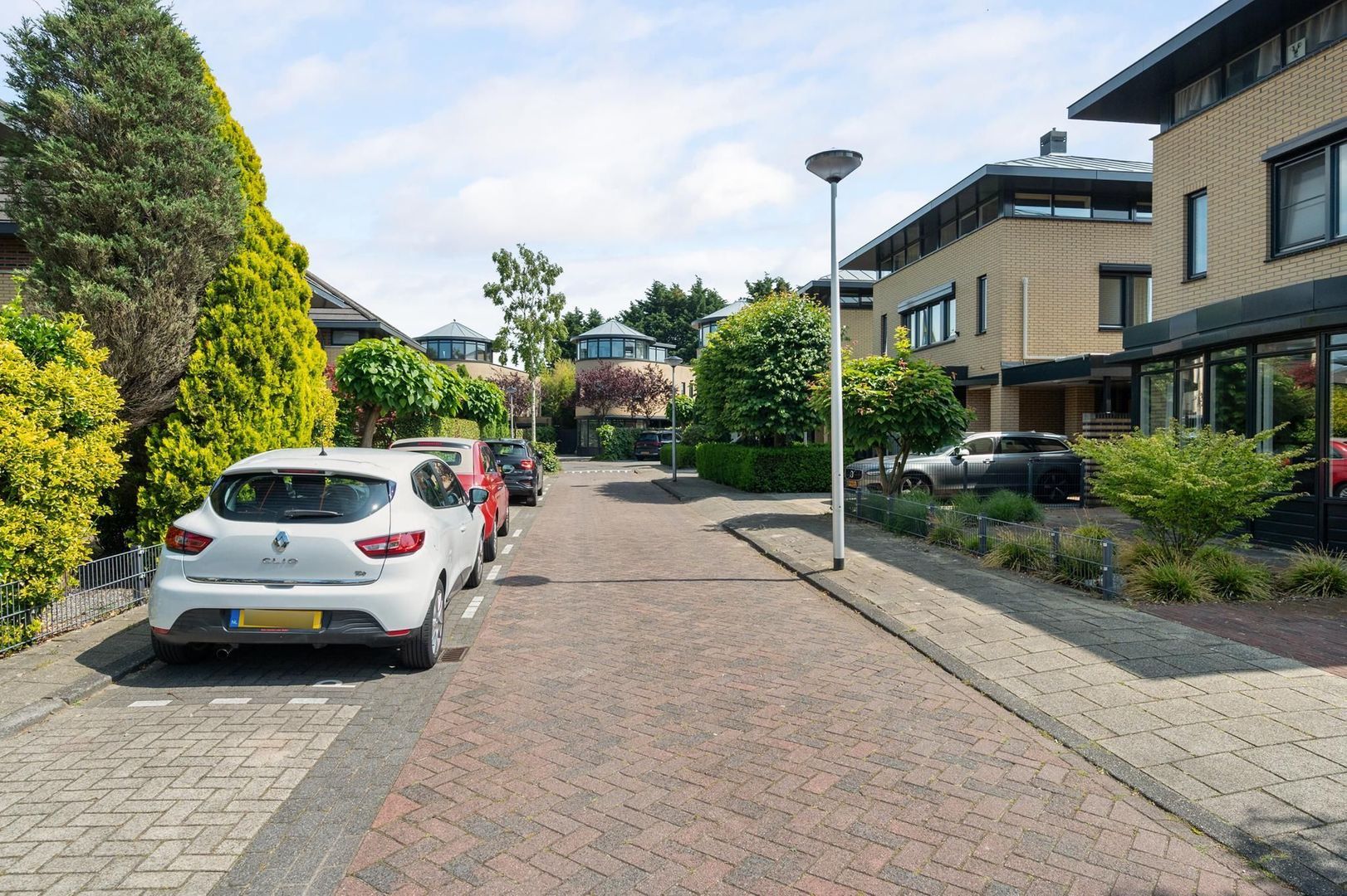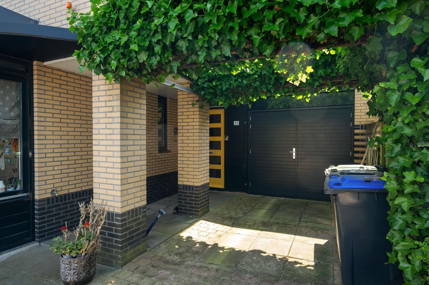 Ruime voortuin met plek om twee auto's te parkeren, met laadpunt voor elektrische auto en toegang tot de garage. De garage, met aansluiting voor de wasmachine en droger, beschikt over airco/warmte pomp en mechanische ventilatie en is af te sluiten met massief houten deuren met driesterrenbeslag.