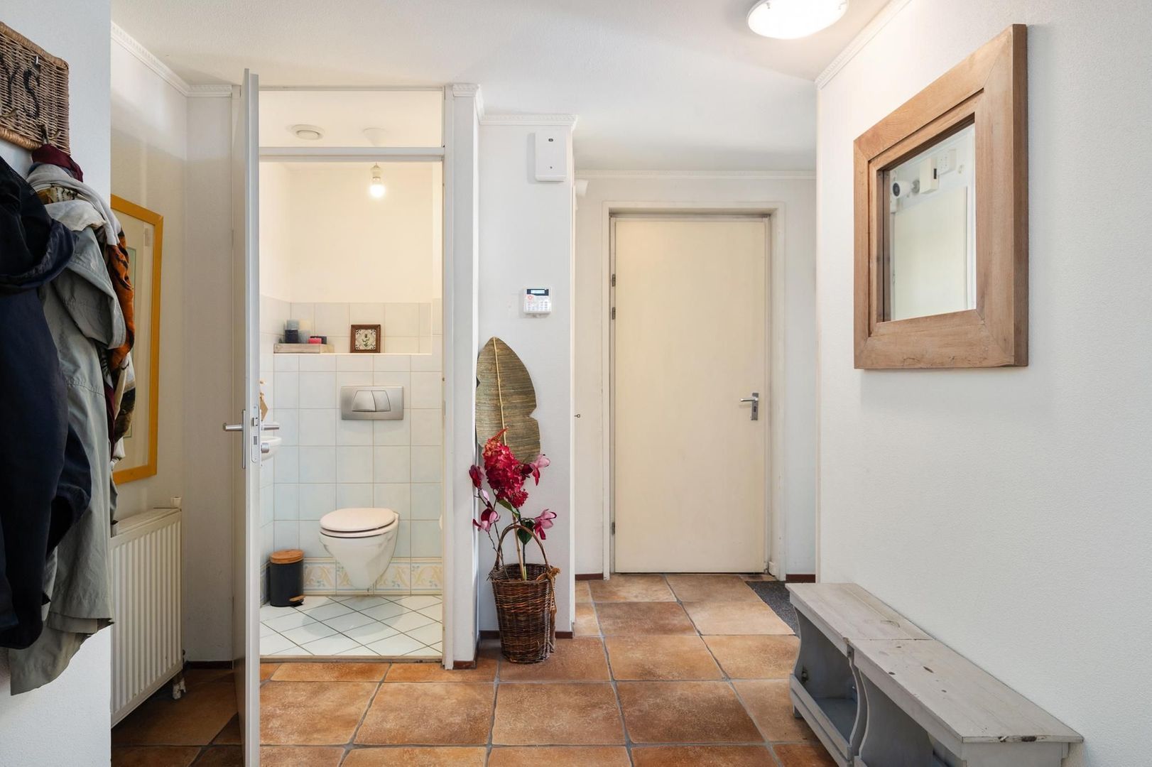 Entree, ruime hal met toilet, meterkast, kruipluik, trapopgang naar de eerste verdieping en toegangsdeur naar de garage.