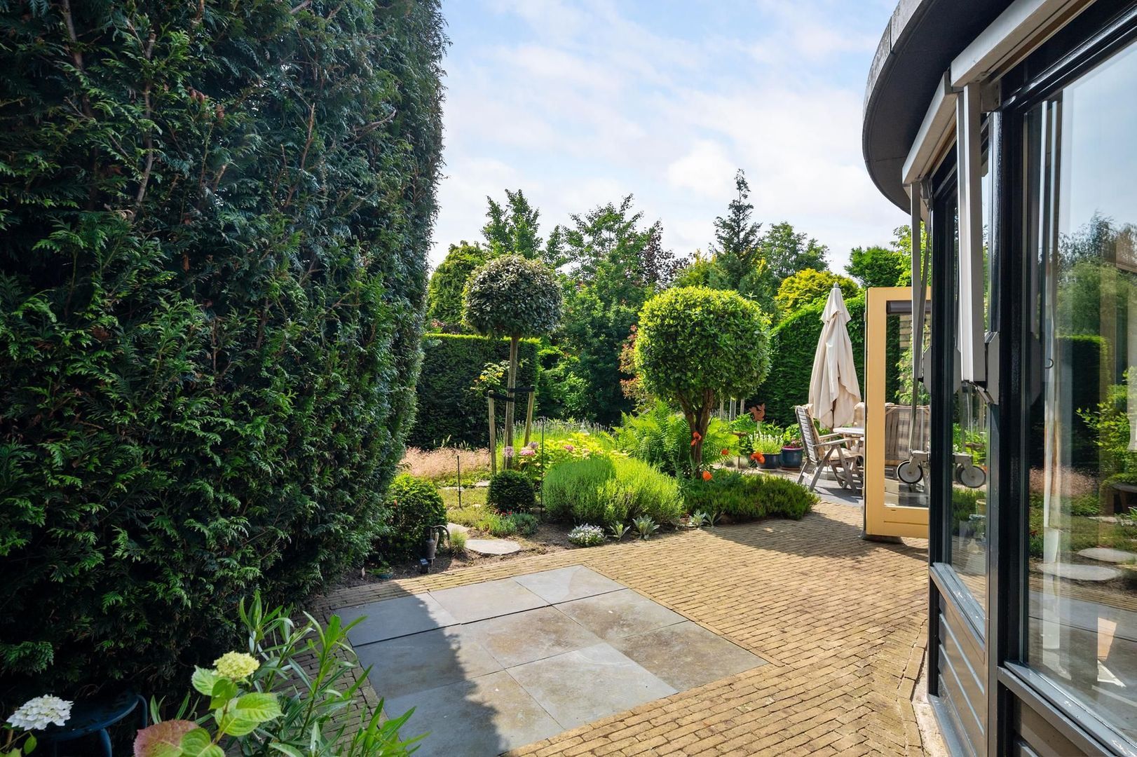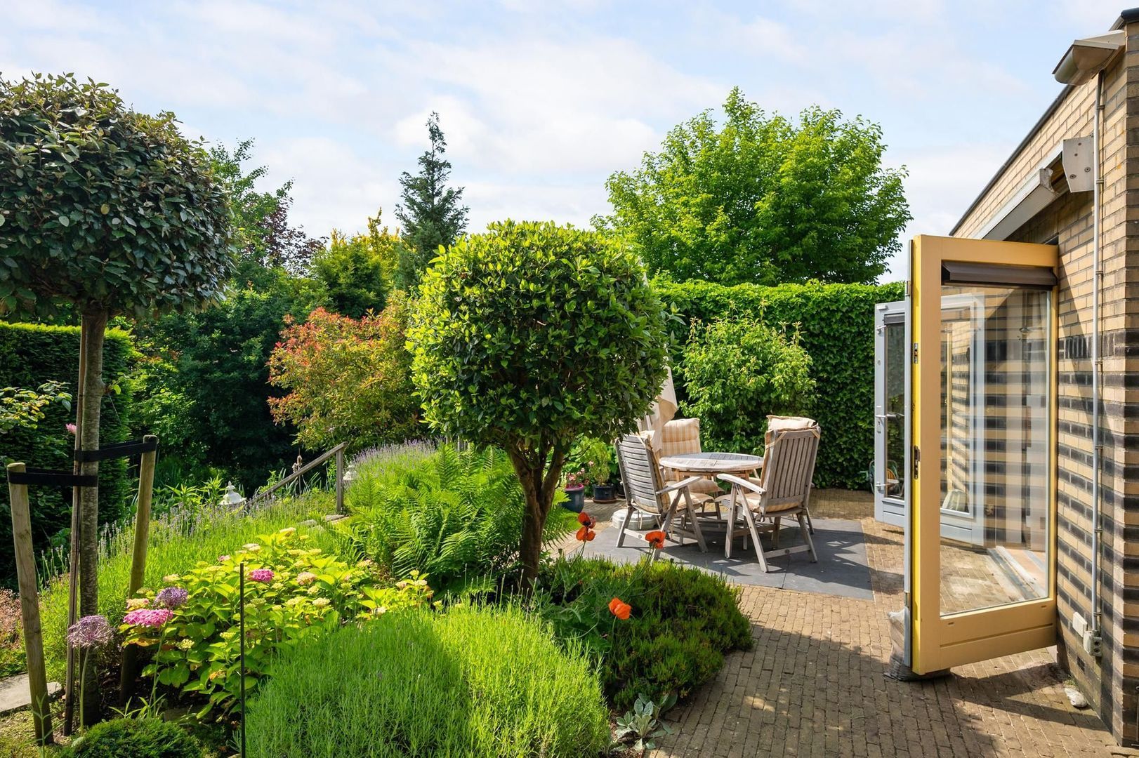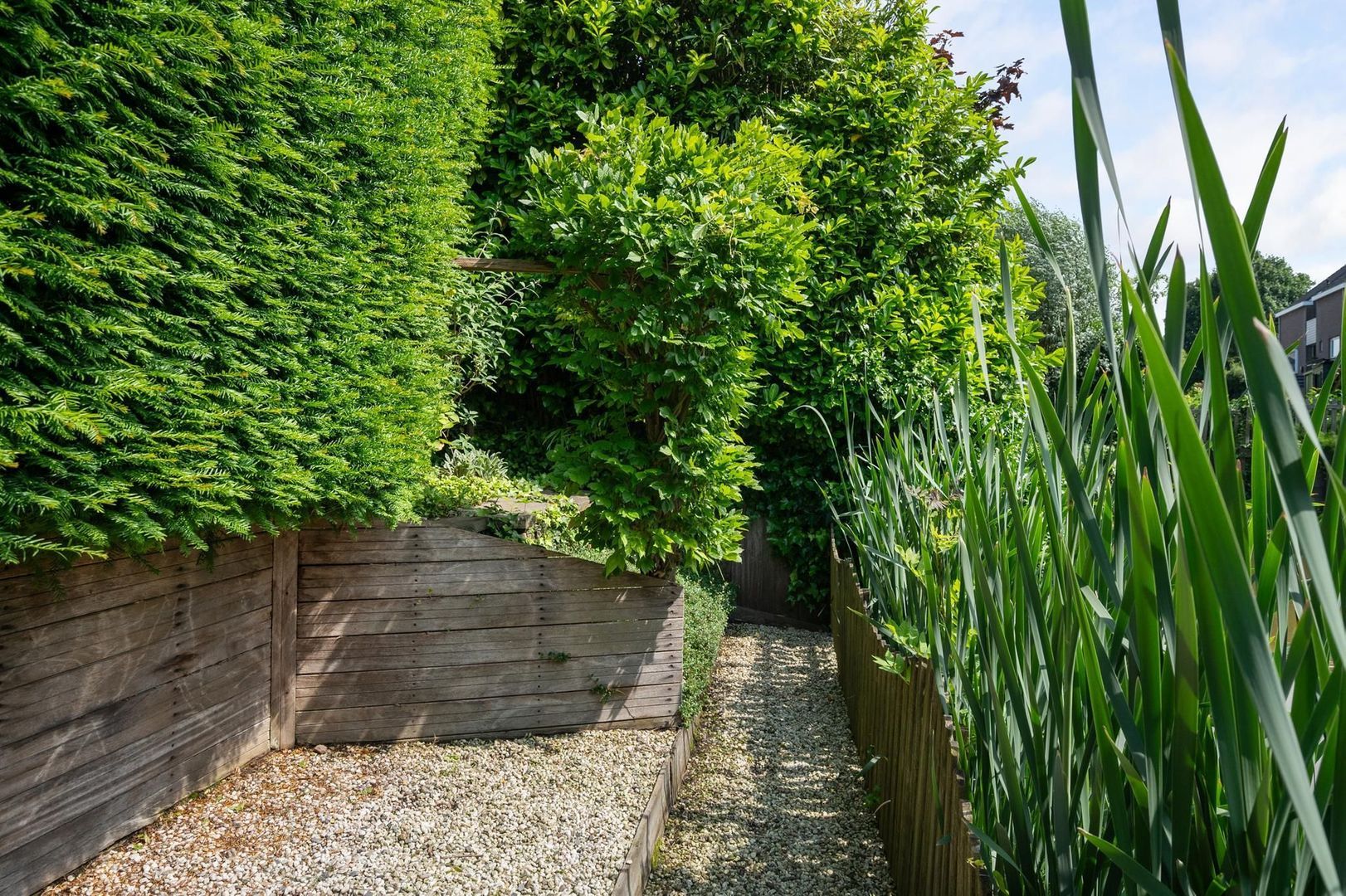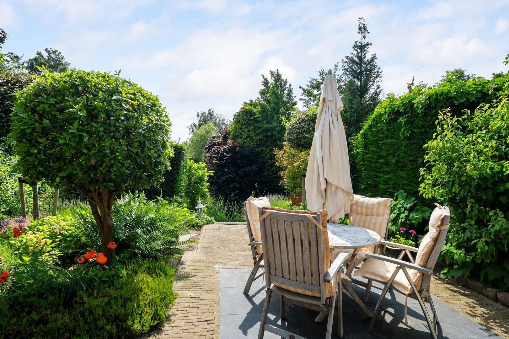 De tuin heeft veel privacy en is fraai aangelegd met begroeide perken afgewisseld met diverse (leisteen) terrassen waar je, desgewenst in de zon of schaduw kan zitten. Er is een tuinkast voor de opslag van de tuinspullen. Verder is er een irrigatie-systeem aangebracht.