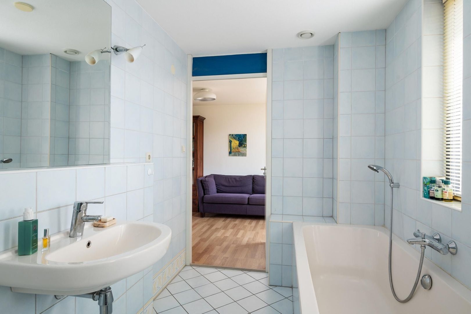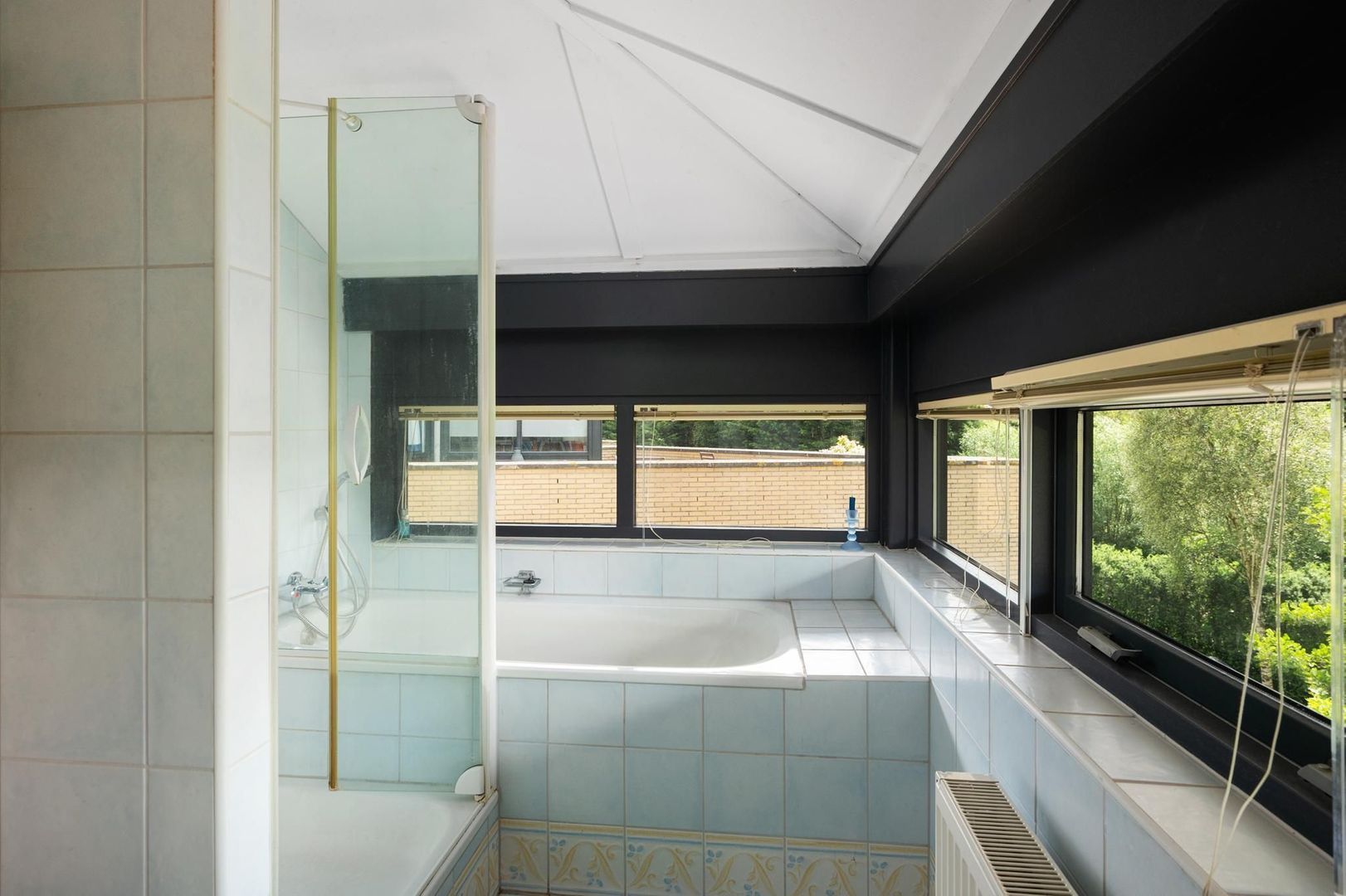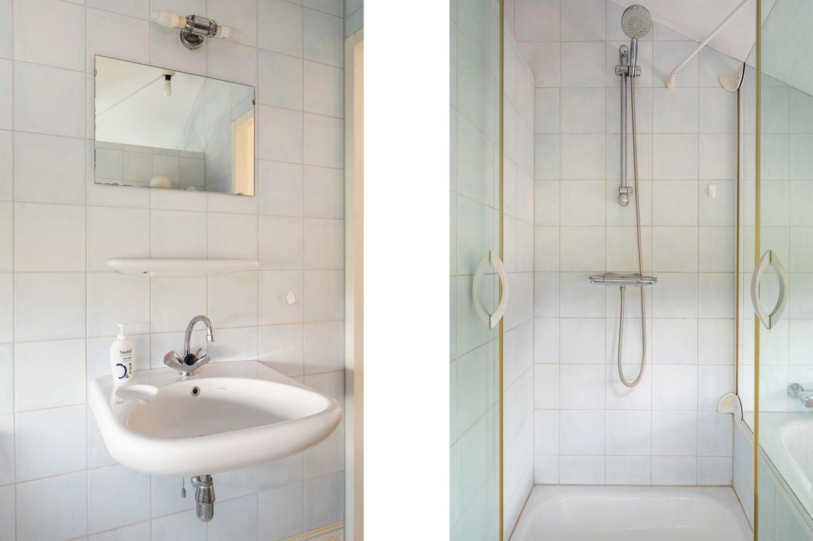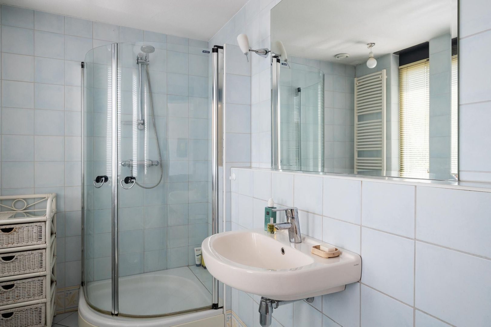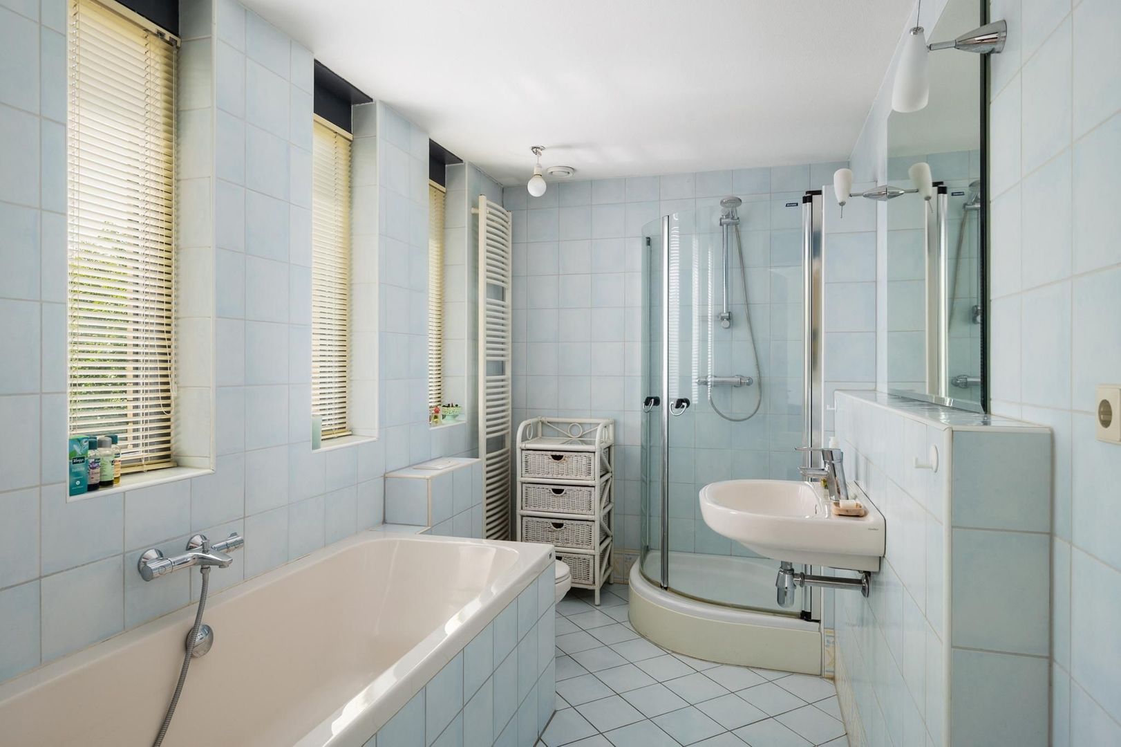 Tweede badkamer met douche, toilet en wastafel en ligbad.