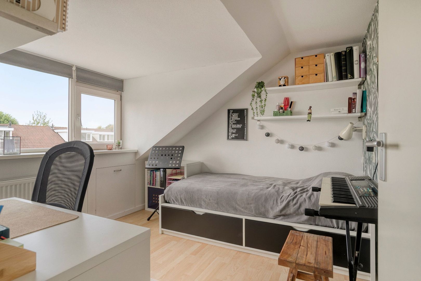 Slaapkamer 4 (ca. 2.97 x 2.96 m2) aan de achterzijde, met knieschotten.