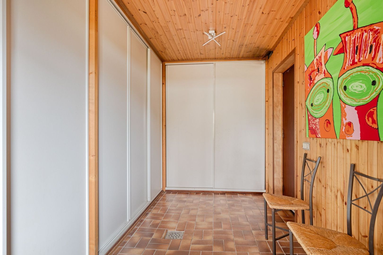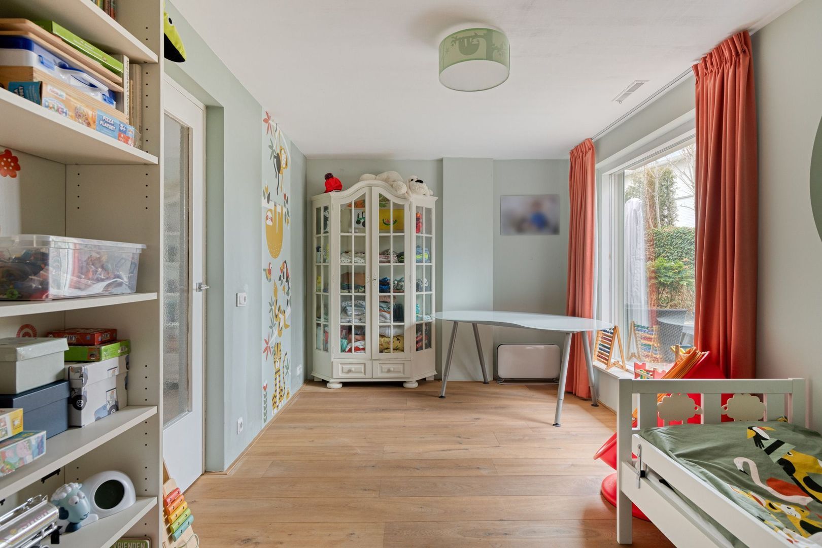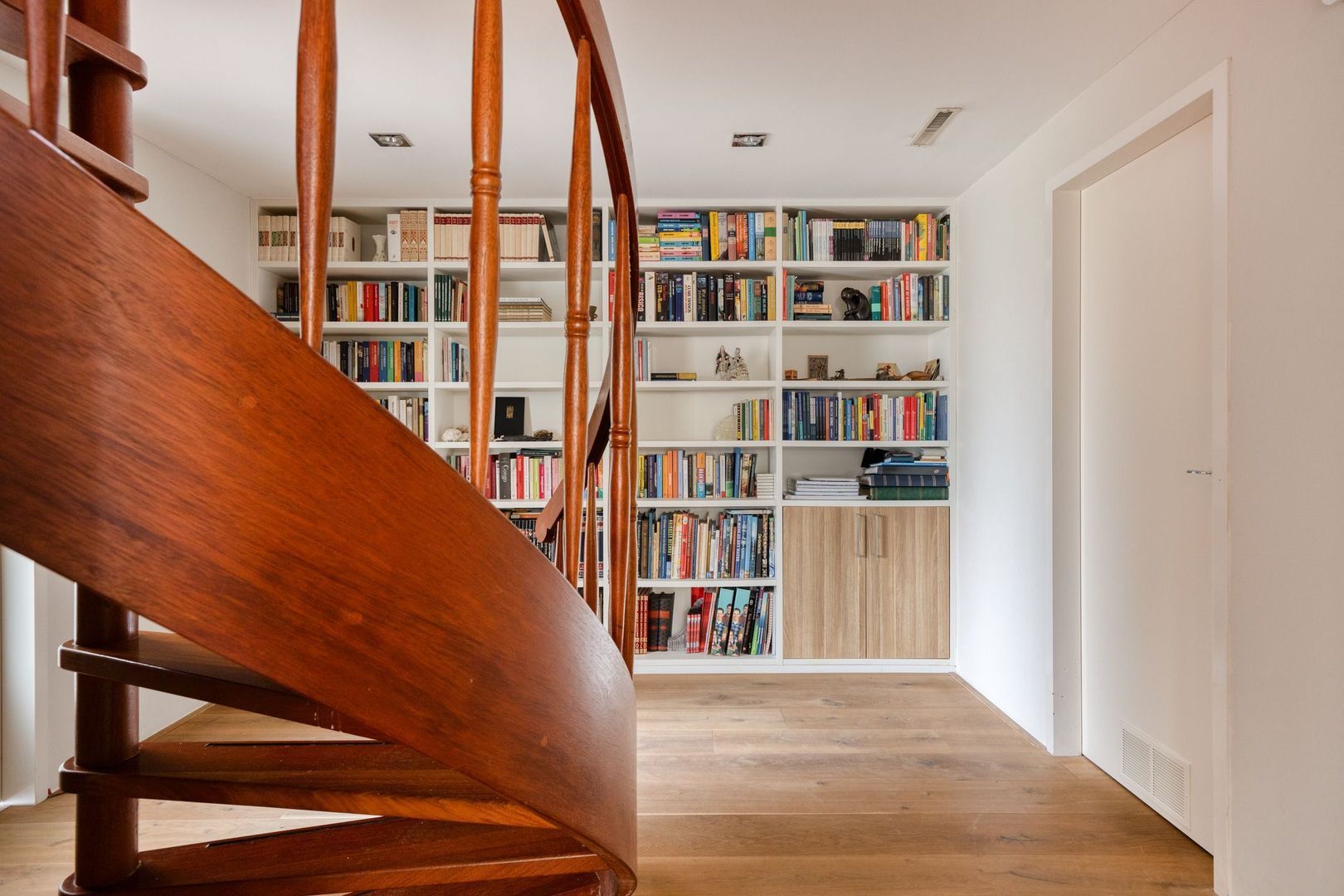 Aan de vierde slaapkamer grenst een praktische berging met toegang tot de tuin.