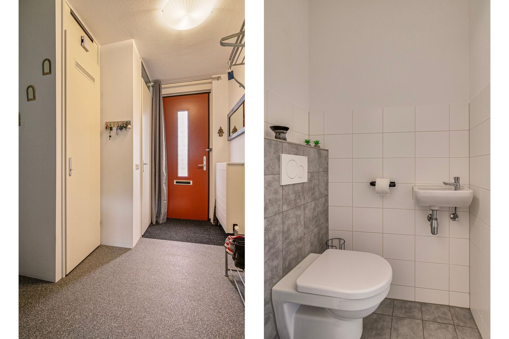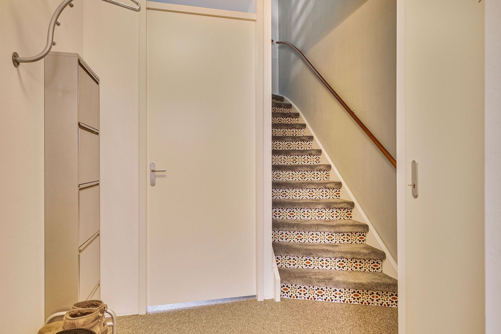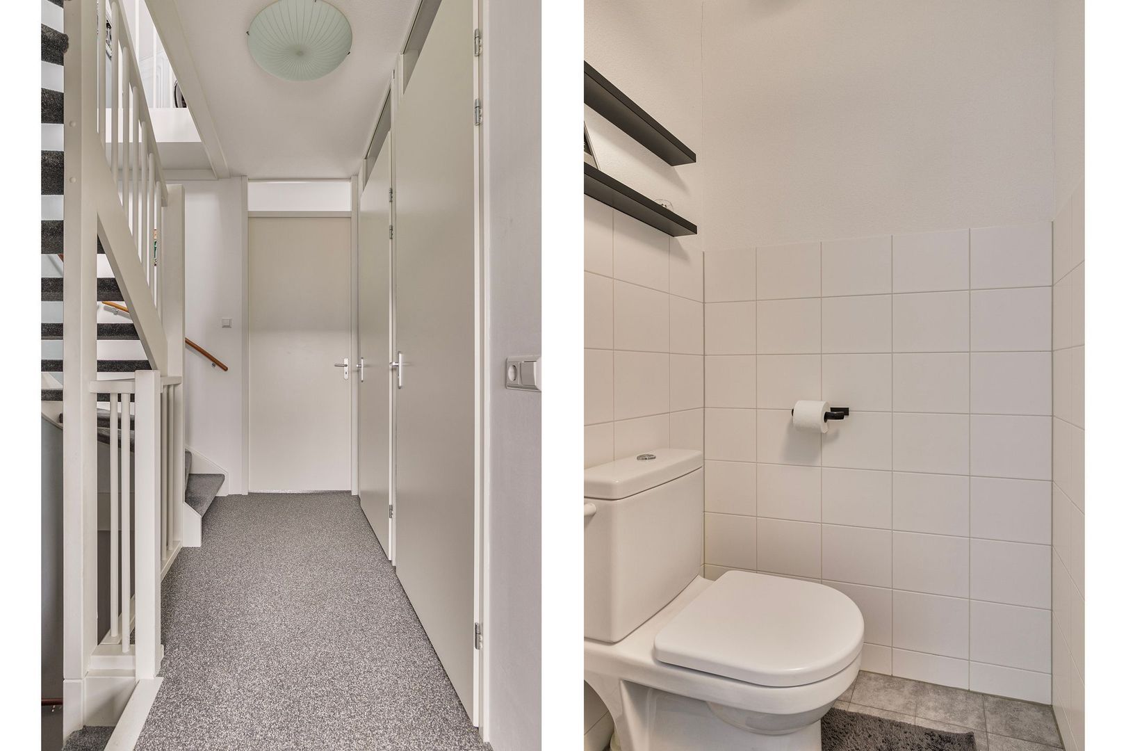 De hal met toilet, meterkast en trapopgang naar de eerste verdieping geeft toegang tot de woonkamer.