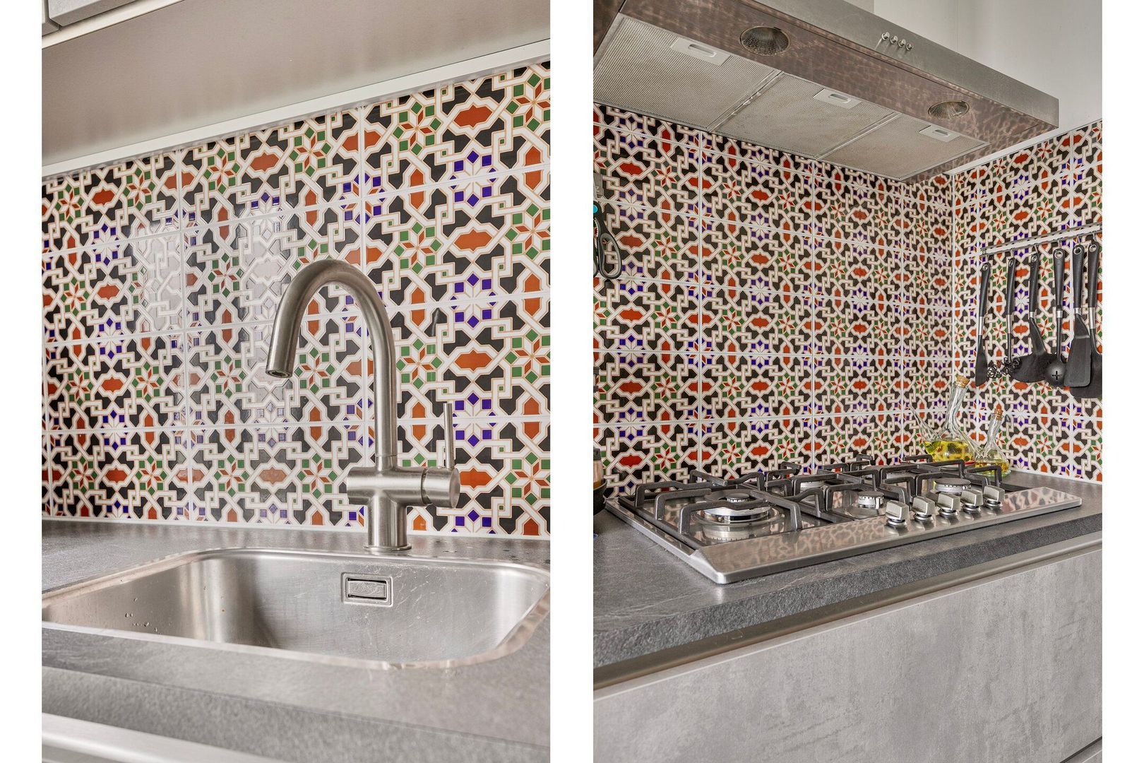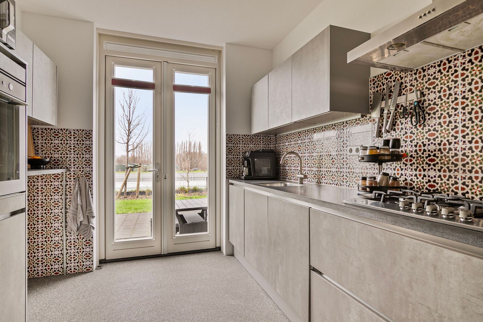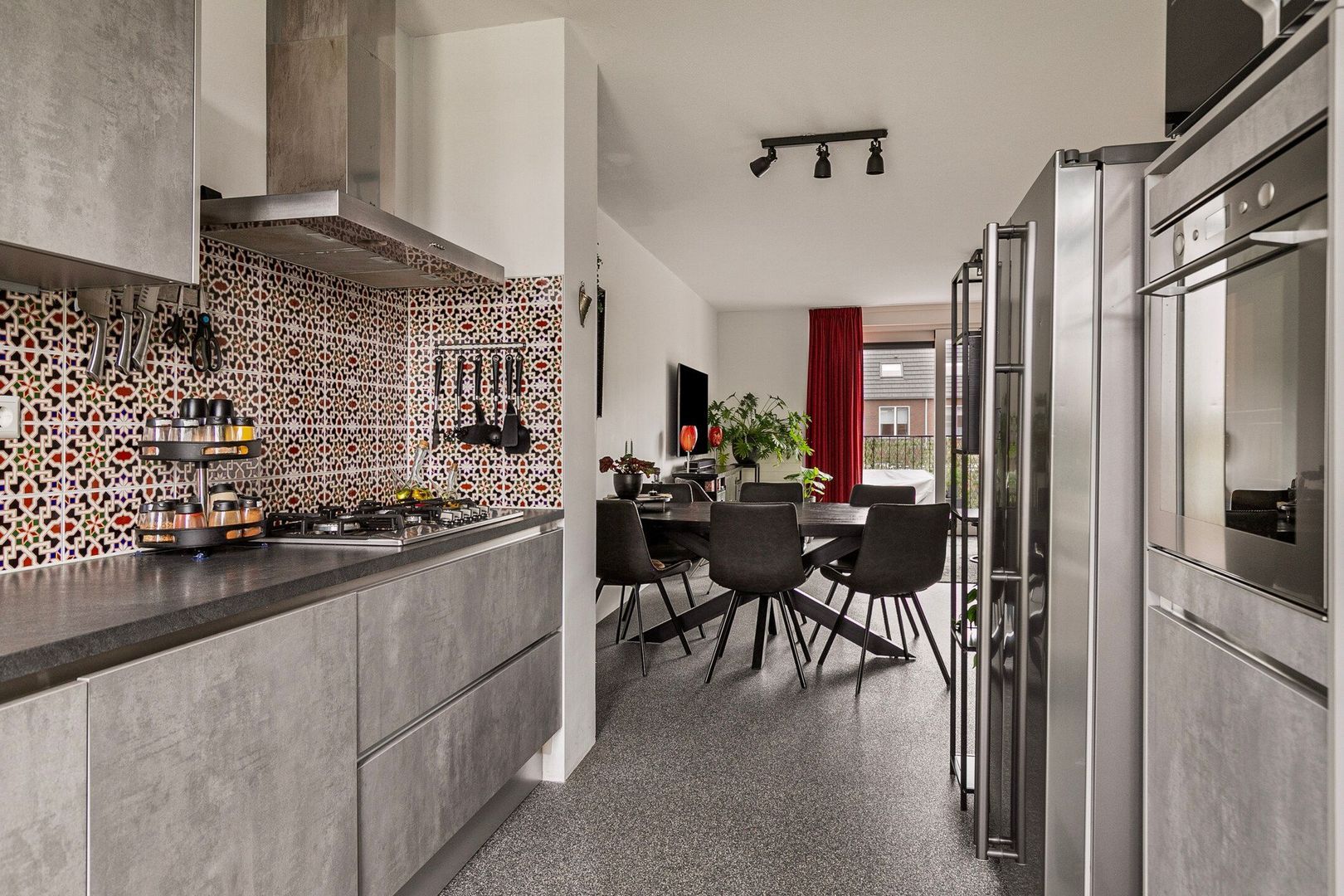 De keuken is voorzien van diverse inbouwapparatuur zoals een 5 pits gasfornuis met afzuigkap, oven, spoelbak met mengkraan, en een vaatwasmachine.