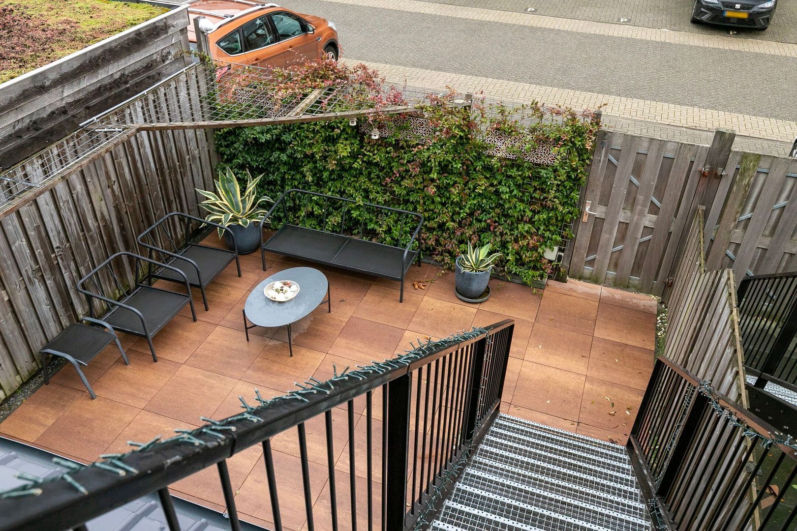 De heerlijke achtertuin is zowel via het balkon als via de achterom bereikbaar.