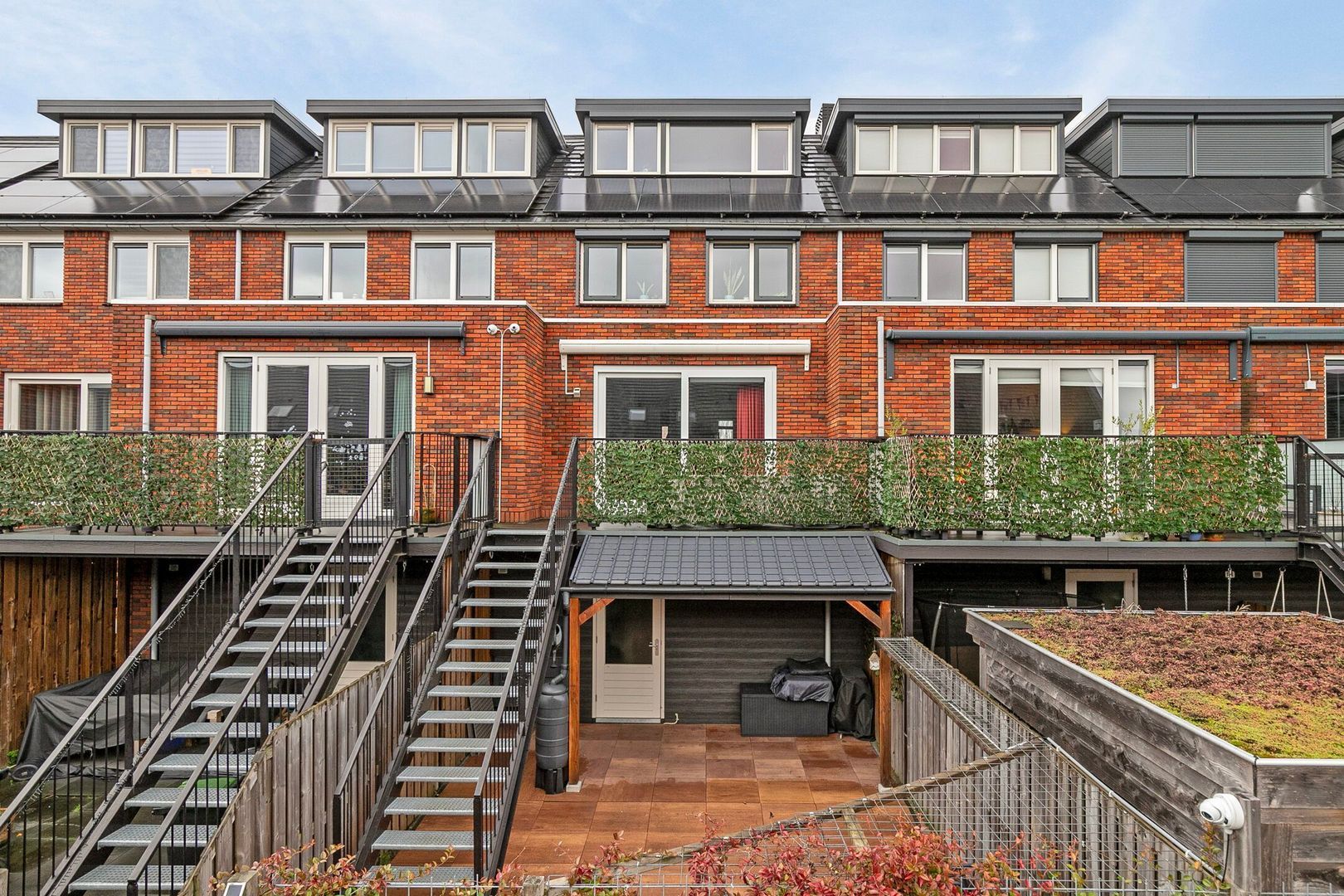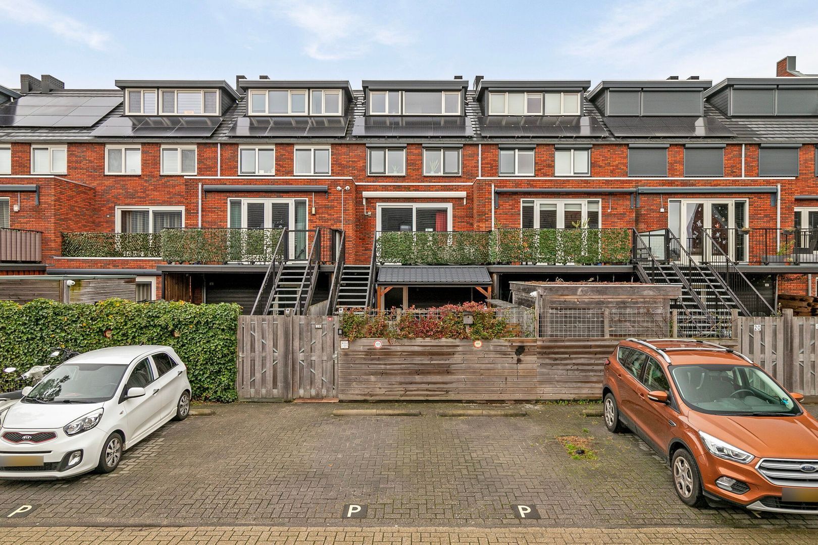 De indeling en het groen maken van deze tuin een fijne plek om te toeven. Via de afsluitbare poort kom je uit bij 2 parkeerplaatsen op eigen terrein. De "weg" daarachter is alleen in gebruik door de bewoners en is een plek waar ook zonder gevaar door kinderen gespeeld kan worden. Onder het balkon vind je nog een verrassend grote berging over de volle breedte, met elektriciteit en buitenverlichting.