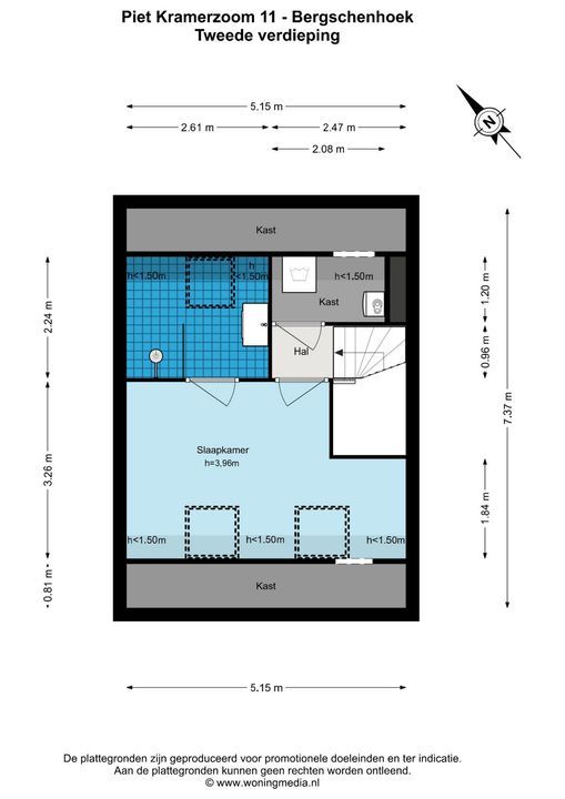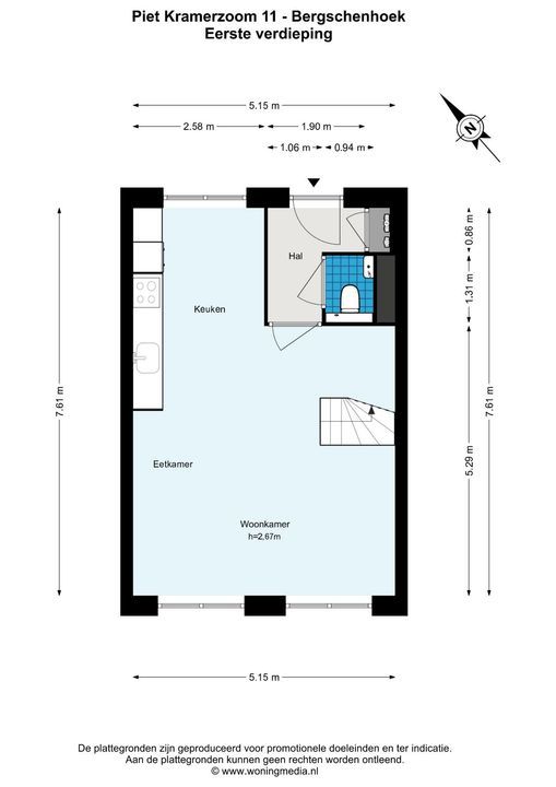 De woning is conform de Branchebrede Meetinstructie (BBMI) opgemeten. De Meetinstructie is bedoeld om een meer eenduidige manier van meten toe te passen voor het geven van een indicatie van de gebruiksoppervlakte. De Meetinstructie sluit verschillen in meetuitkomsten niet volledig uit, door bijvoorbeeld interpretatieverschillen, afrondingen of beperkingen bij het uitvoeren van de meting.