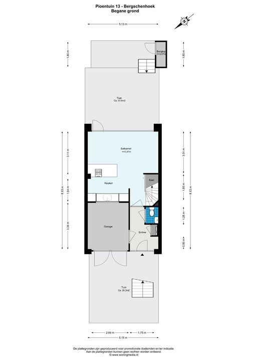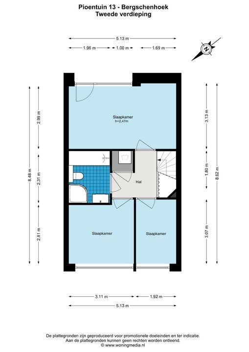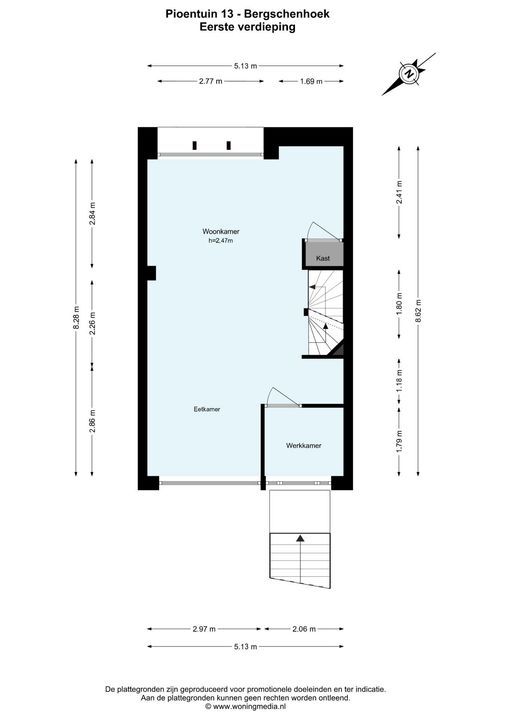 De woning is conform de Branchebrede Meetinstructie (BBMI) opgemeten. De Meetinstructie is bedoeld om een meer eenduidige manier van meten toe te passen voor het geven van een indicatie van de gebruiksoppervlakte. De Meetinstructie sluit verschillen in meetuitkomsten niet volledig uit, door bijvoorbeeld interpretatieverschillen, afrondingen of beperkingen bij het uitvoeren van de meting.