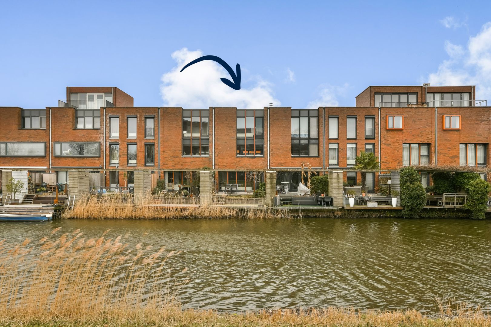 Deze schitterende geschakelde woning (121 m²) kenmerkt zich door een royale indeling en een heerlijk lichte en zonnige woonkamer met fraai uitzicht. De woning is smaakvol afgewerkt en beschikt over een fijne woonkeuken, parkeergelegenheid op eigen terrein en een zonnige achtertuin op het zuidoosten, direct grenzend aan het water.