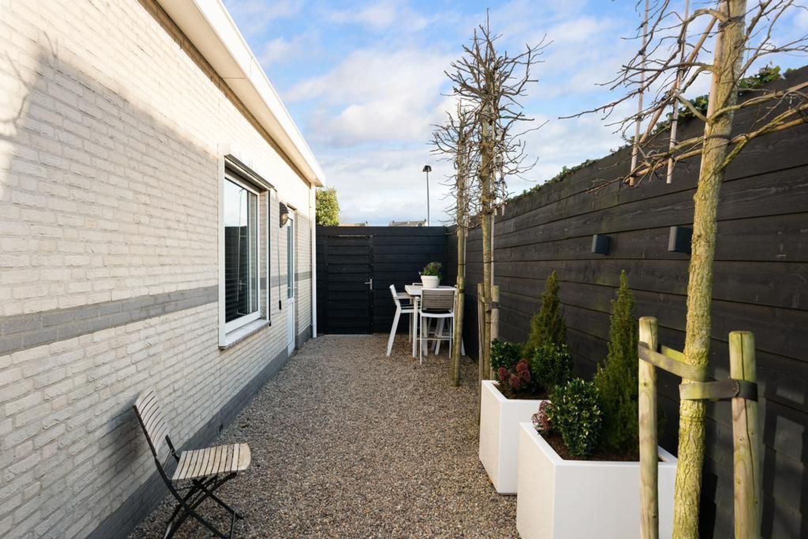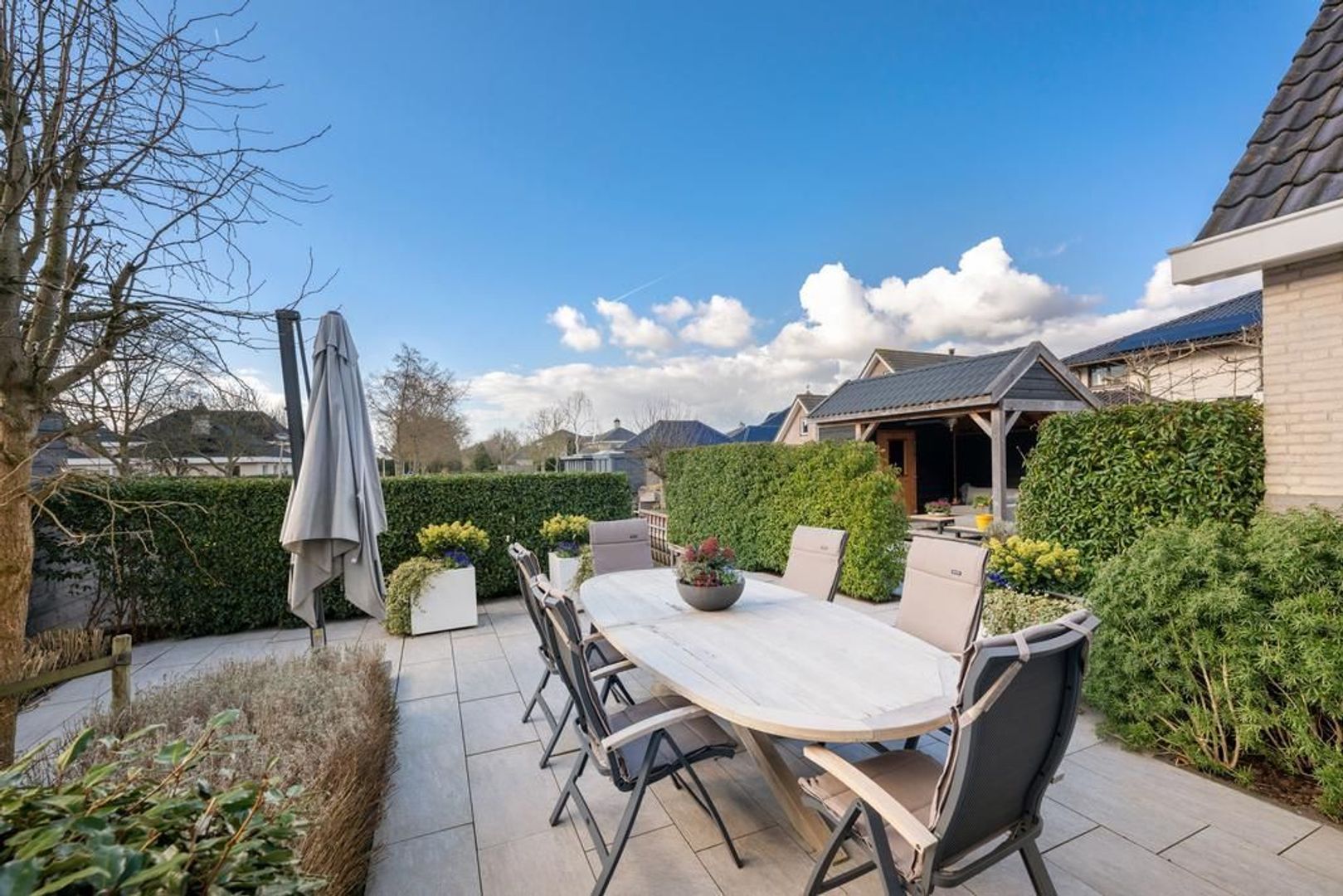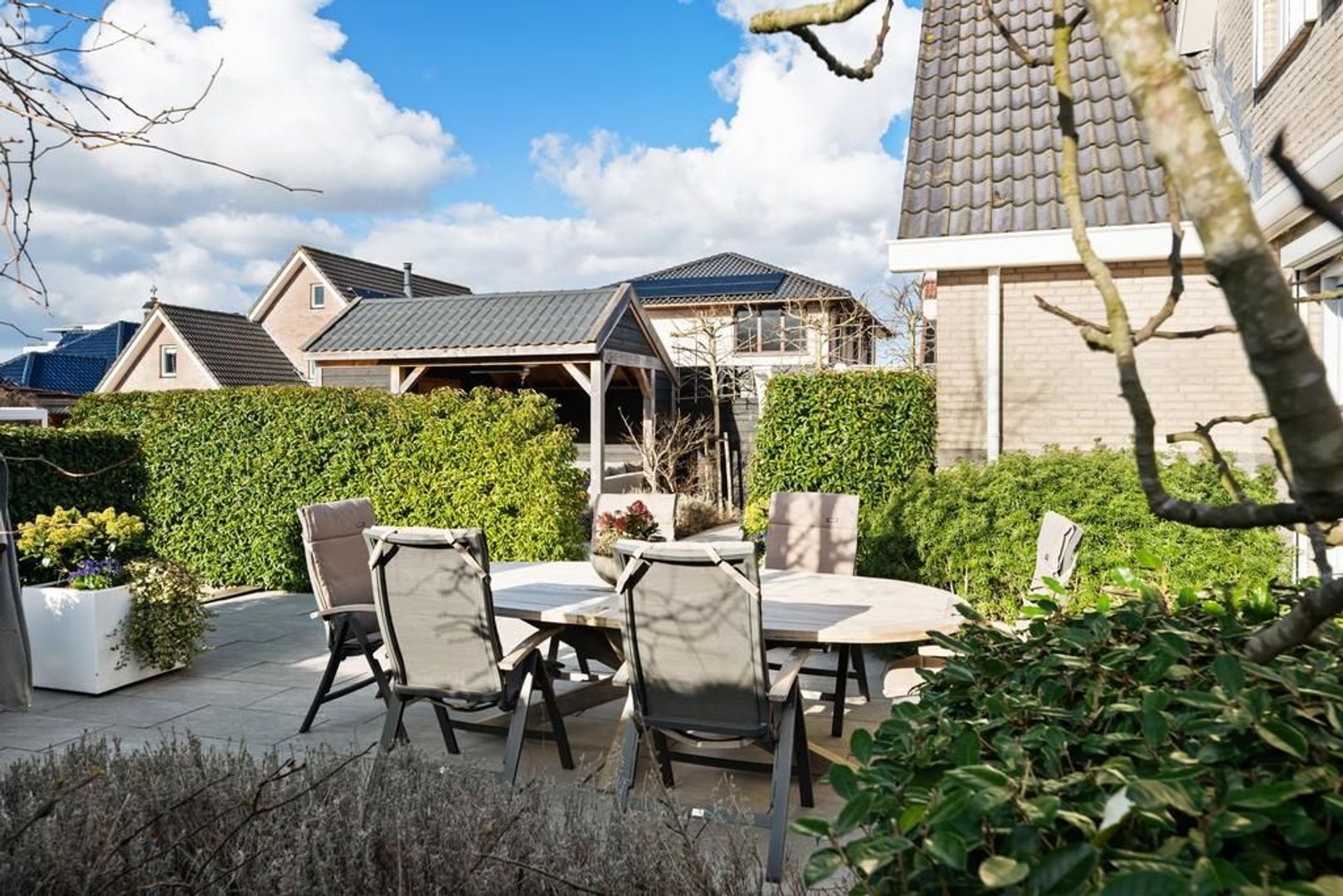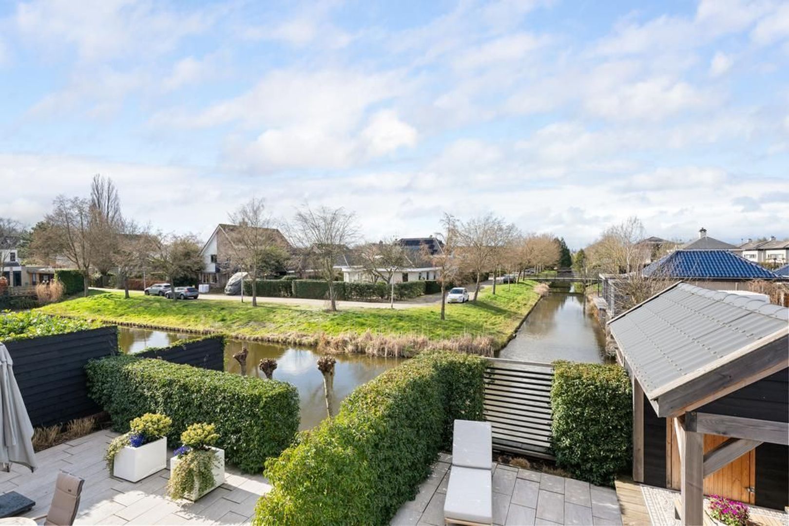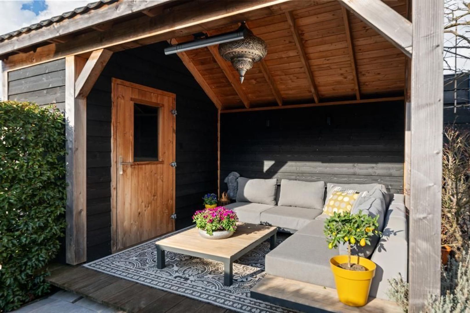 De verzorgde achtertuin is gelegen op het westen en grenst aan de woonkamer en de slaap/studeerkamer. De tuin beschikt over diverse terrassen met veel privacy, een veranda met heater, berging, buitendouche en een schitterend vrij uitzicht op de achtergelegen singel. De woning is voorzien van zonnescreens en een zonnescherm.
