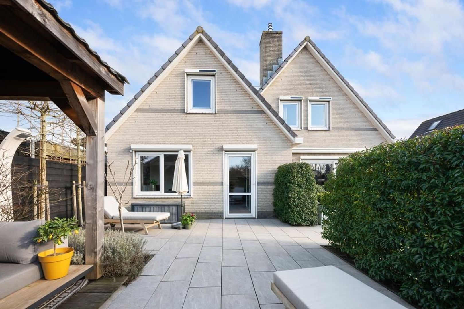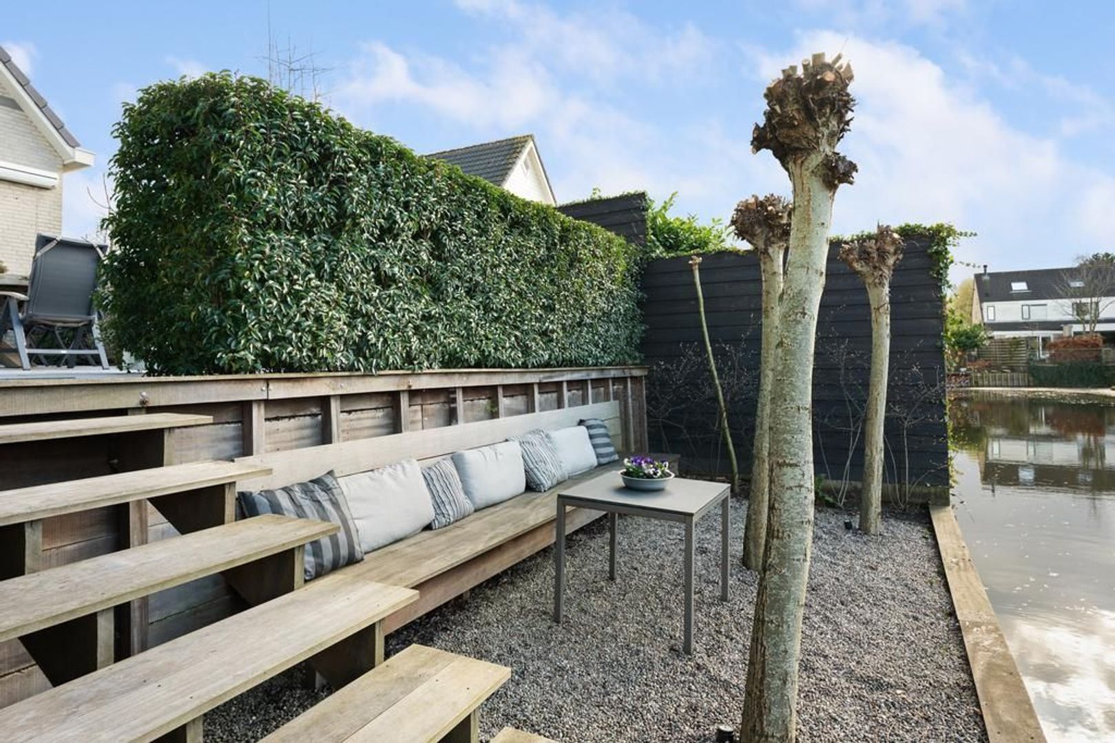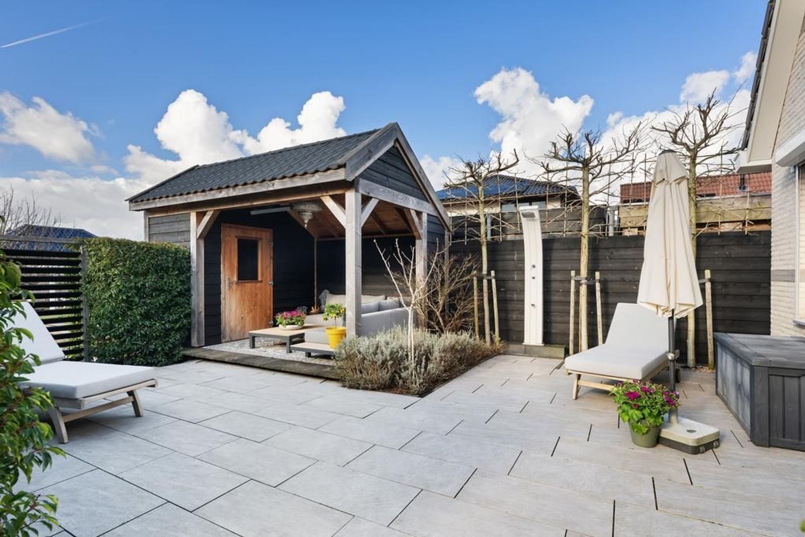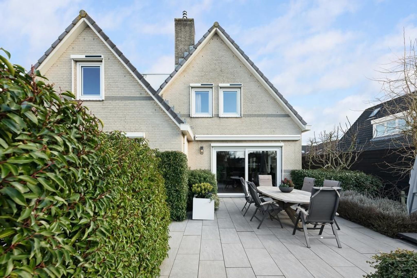 De verzorgde achtertuin is gelegen op het westen en grenst aan de woonkamer en de slaap/studeerkamer. De tuin beschikt over diverse terrassen met veel privacy, een veranda met heater, berging, buitendouche en een schitterend vrij uitzicht op de achtergelegen singel. De woning is voorzien van zonnescreens en een zonnescherm.