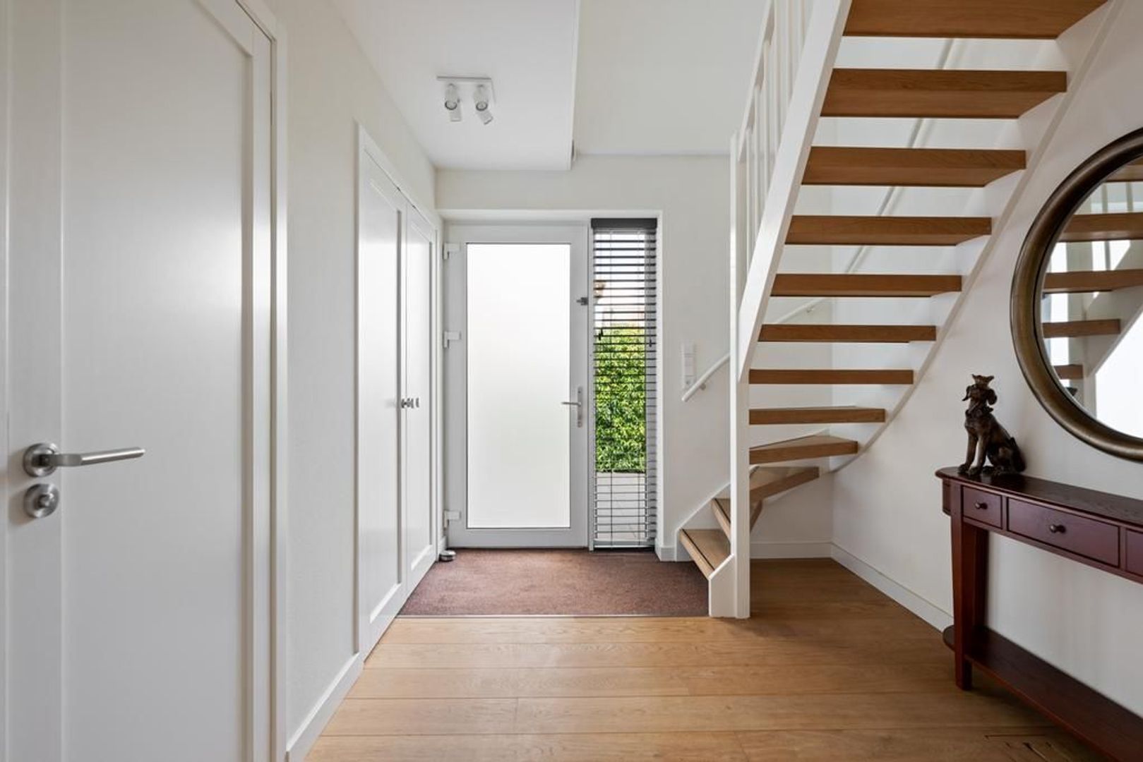 Entree, ruime hal met toilet, garderobekast met daarachter de meterkast, trapopgang naar de 1e verdieping en toegang tot de woonkamer.