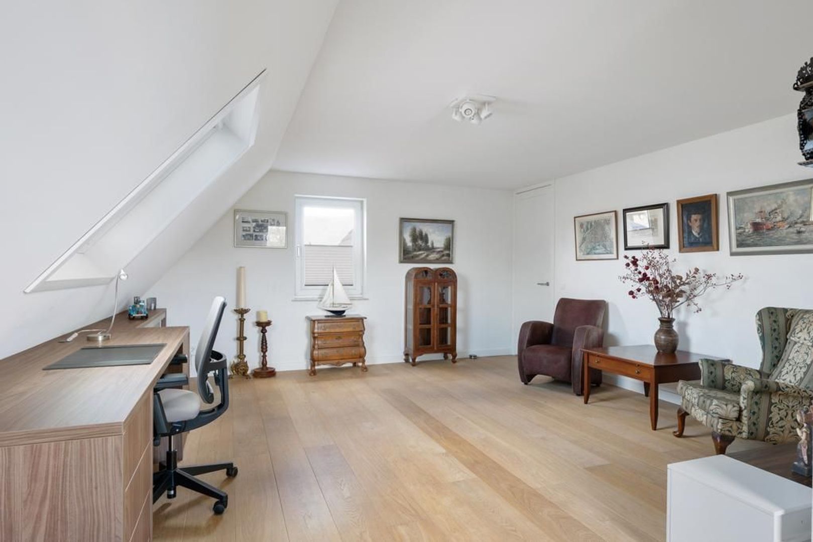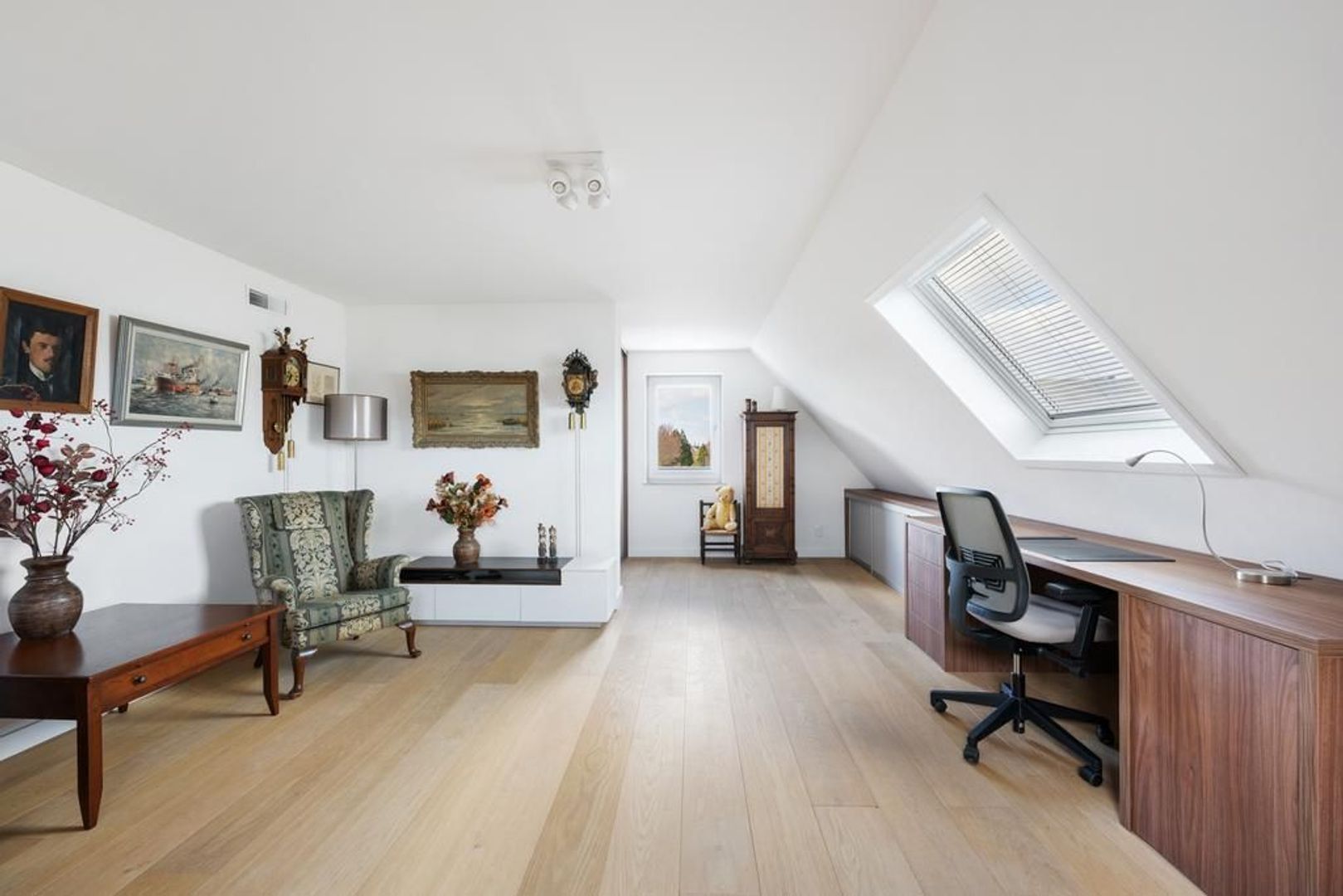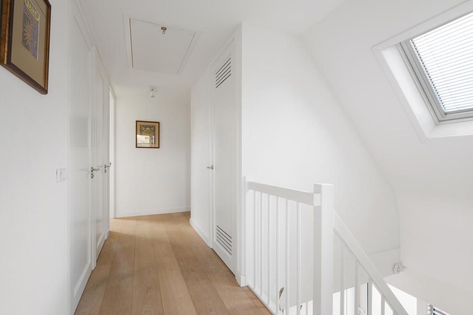 De ruime overloop geeft toegang tot de twee slaapkamers, garderobekamer, badkamer, het aparte toilet, technische ruimte en toegang tot de vliering.