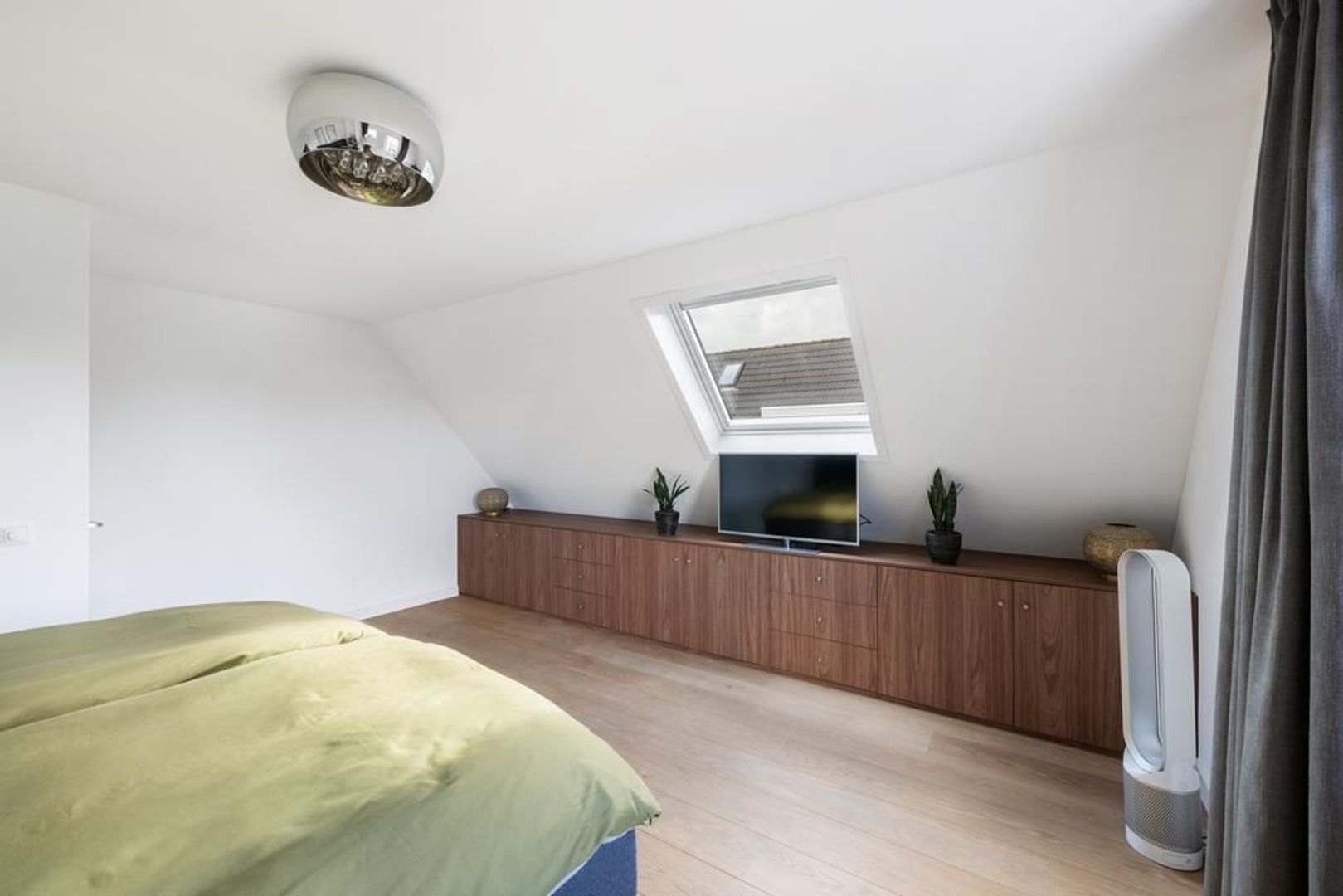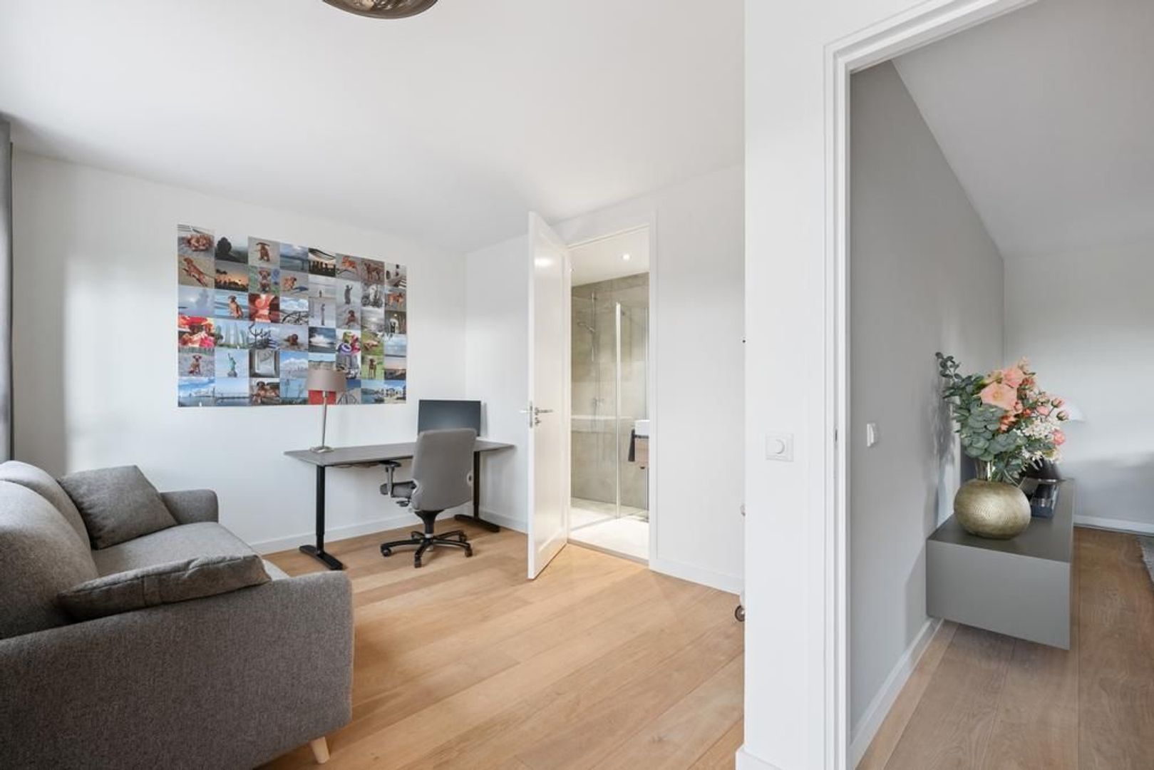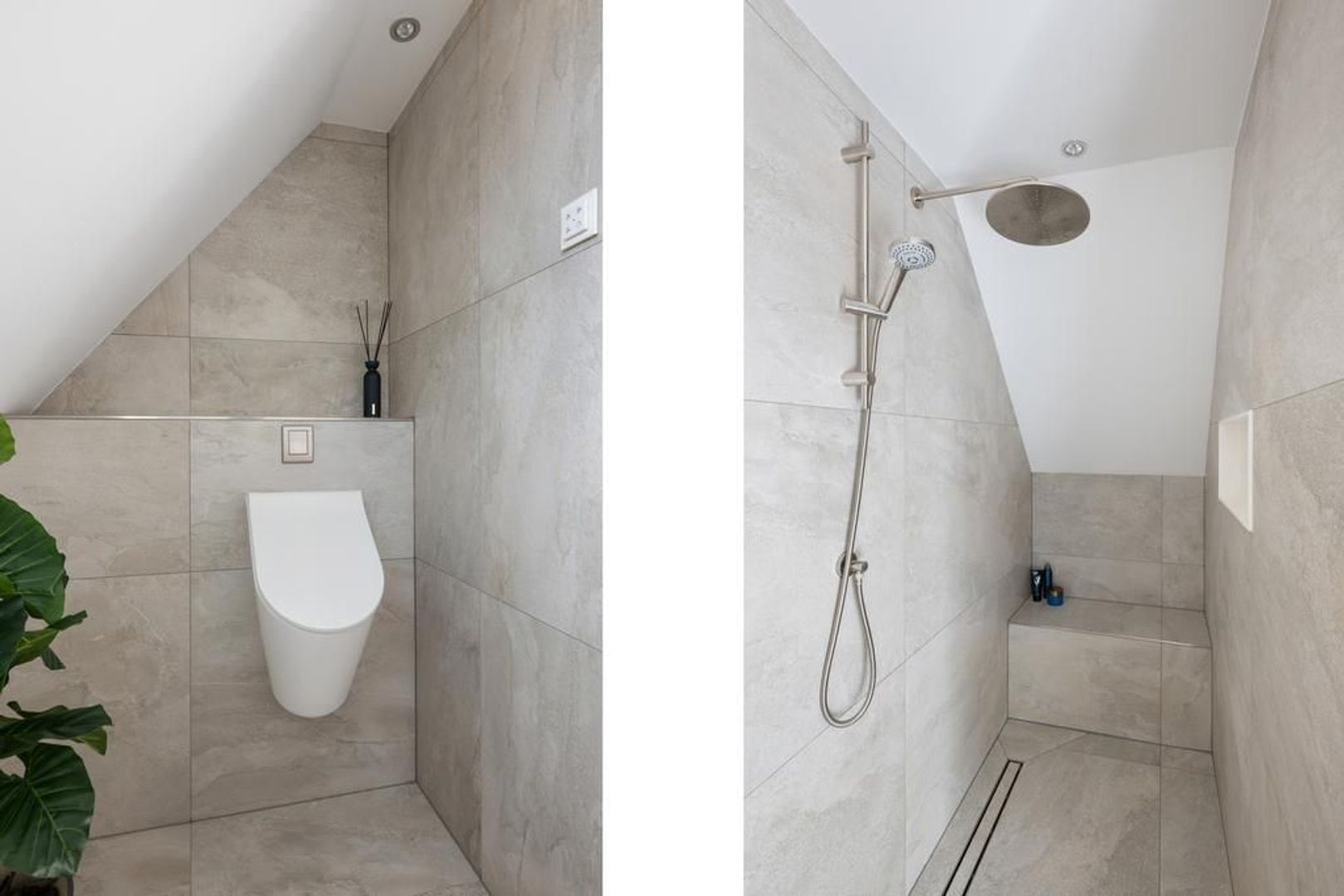 De ruime overloop geeft toegang tot de twee slaapkamers, garderobekamer, badkamer, het aparte toilet, technische ruimte en toegang tot de vliering.