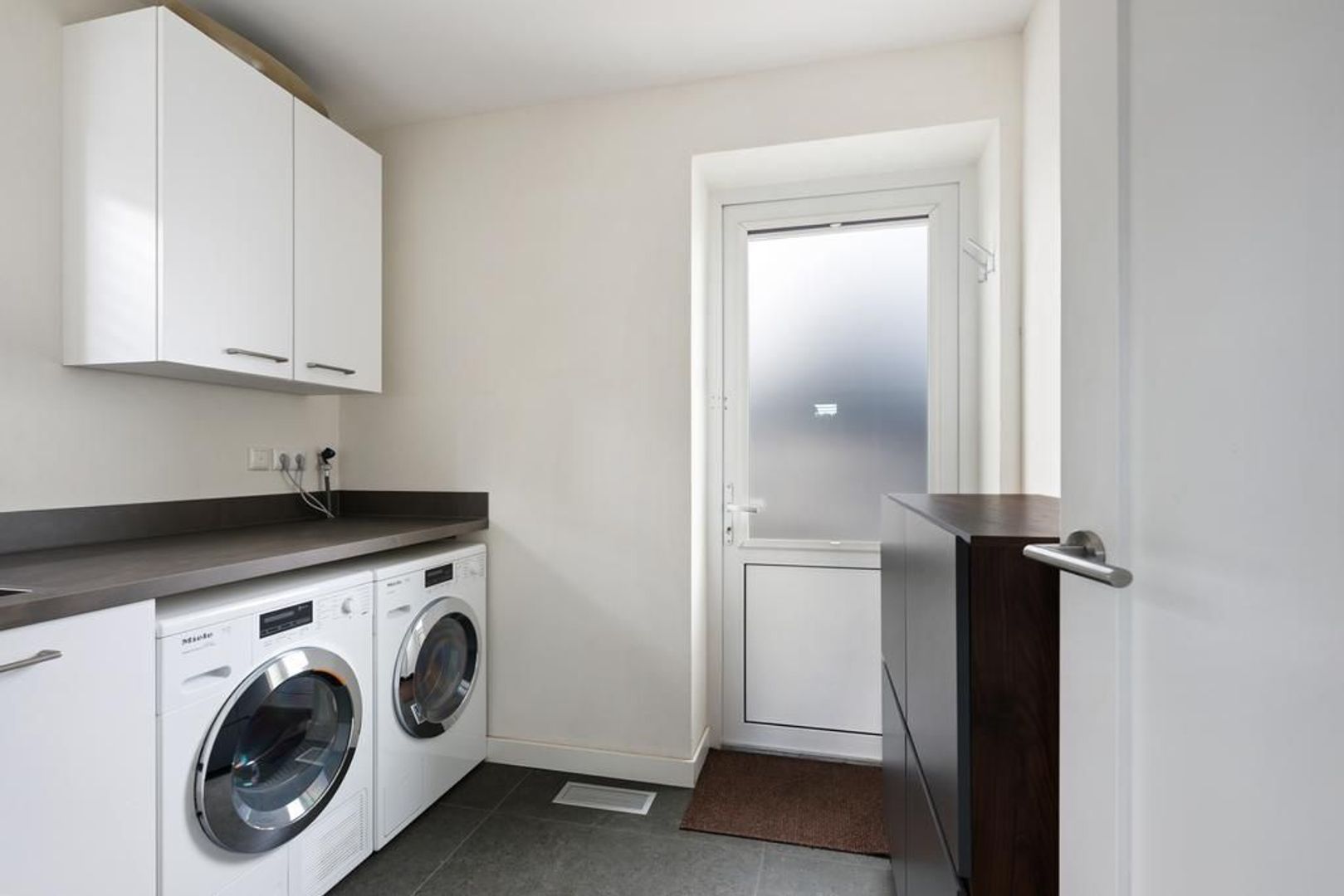 Vanuit de keuken bereik je de bijkeuken, met de aansluitingen voor de wasmachine en droger.