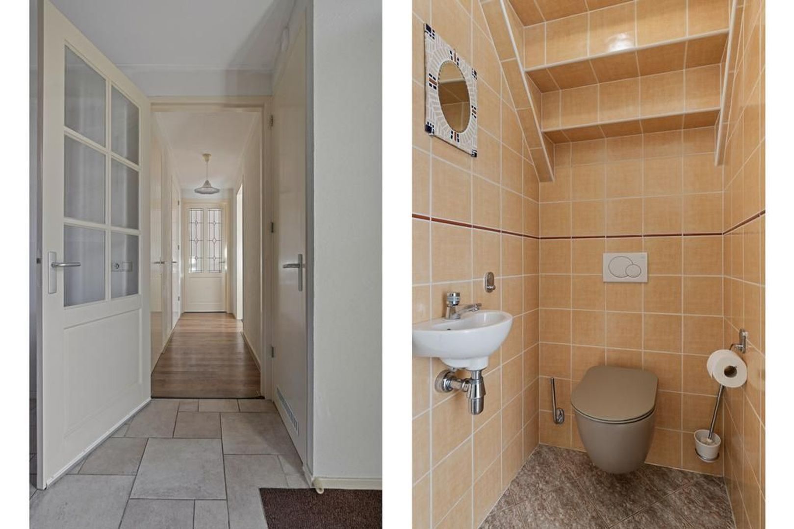 De hal biedt toegang tot een gang die uitkomt in de badkamer, toilet, slaapkamer en de woonkamer.