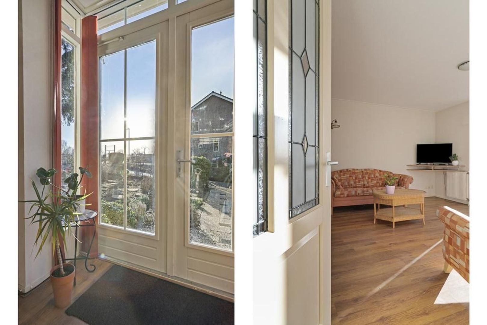 Vanaf de Rottekade, pad naar voordeur, entree via de zijkant. Hal met meterkast, aansluiting voor wasmachine en droger, trapopgang naar de eerste verdieping.