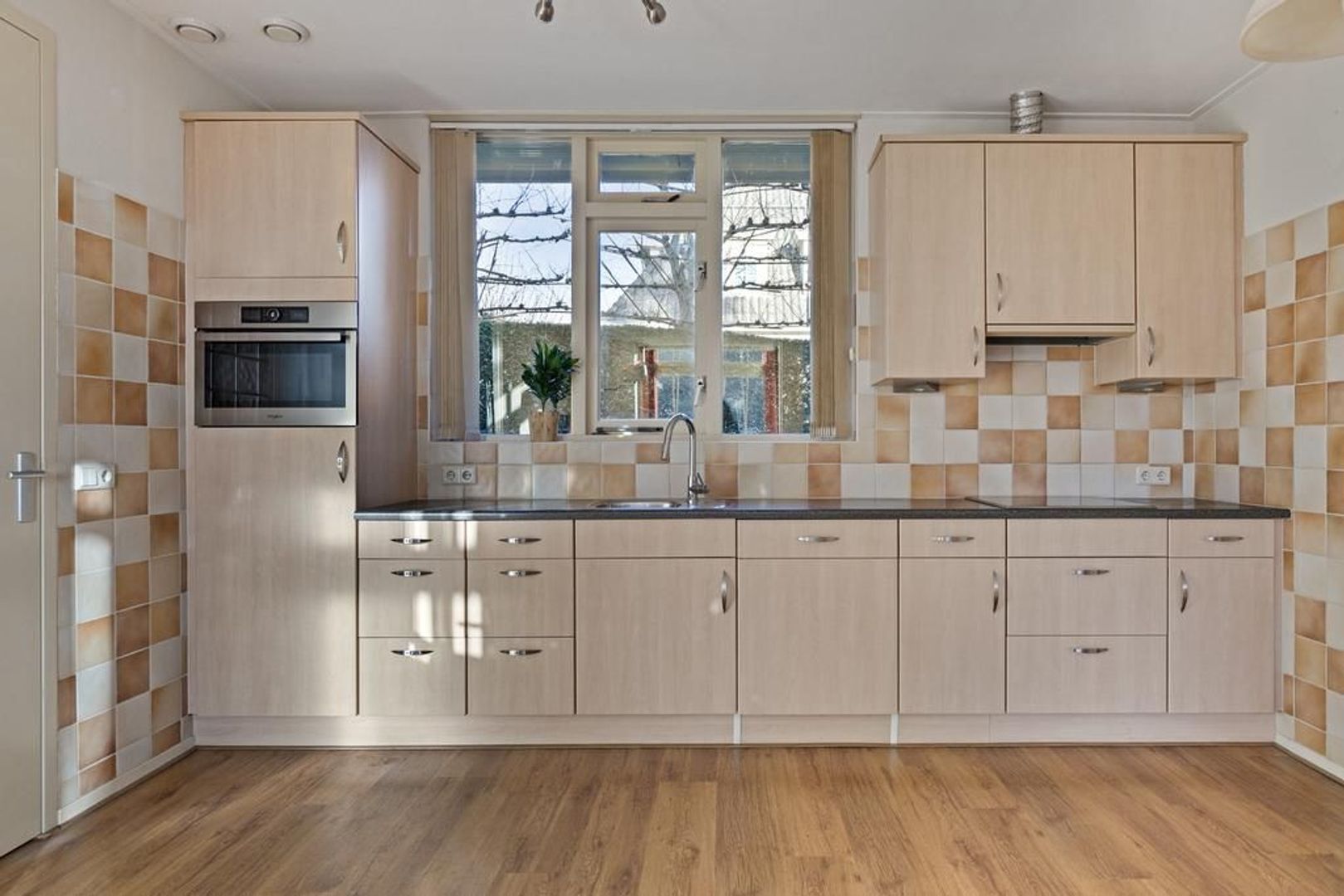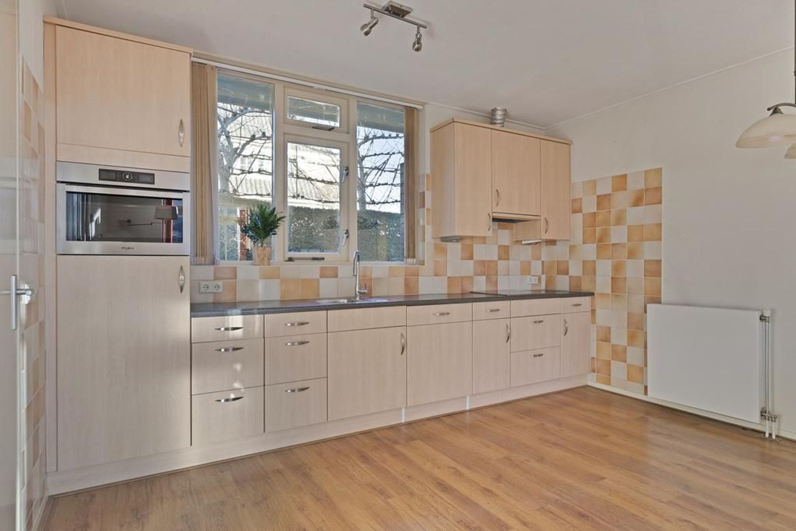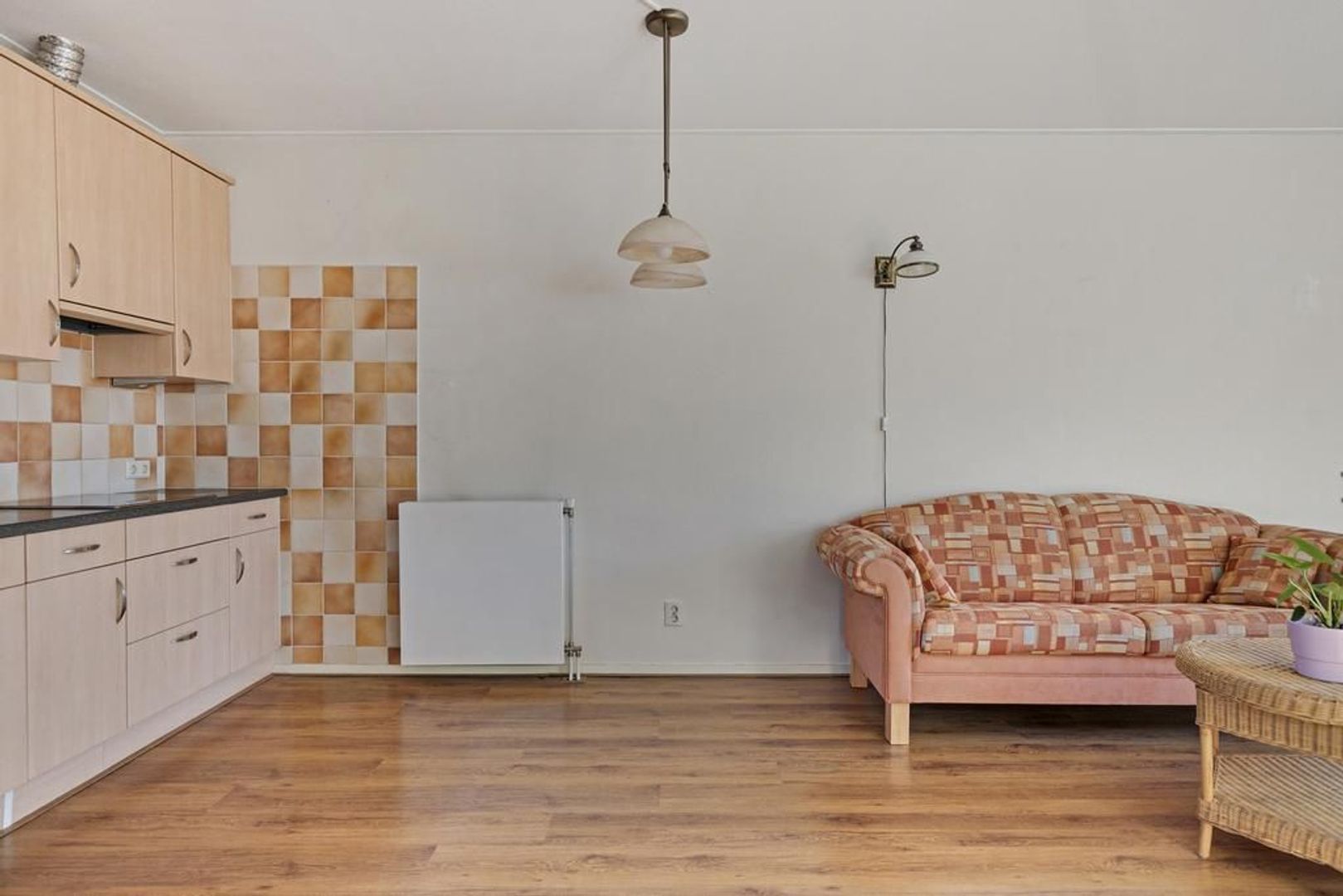 De woonkamer heeft een open keuken welke voorzien is van combi oven, koelkast, vaatwasser, elektrische kookplaat, afzuigkap en spoelbak met mengkraan. Naast de keuken bevindt zich een ruime inbouwkast, ideaal voor opbergruimte en voorraad. De woonkamer is voorzien van een laminaatvloer. Vanuit de woonkamer is middels openslaande deuren