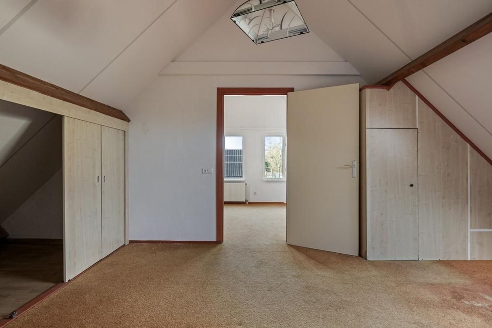 Deze ruime slaapkamer heeft dakramen en met het plaatsen van dakkapellen zouden er twee slaapkamers gerealiseerd kunnen worden. Tevens bevindt hier de opstelplaats voor de cv-ketel en is er achter de knieschotten extra bergruimte.