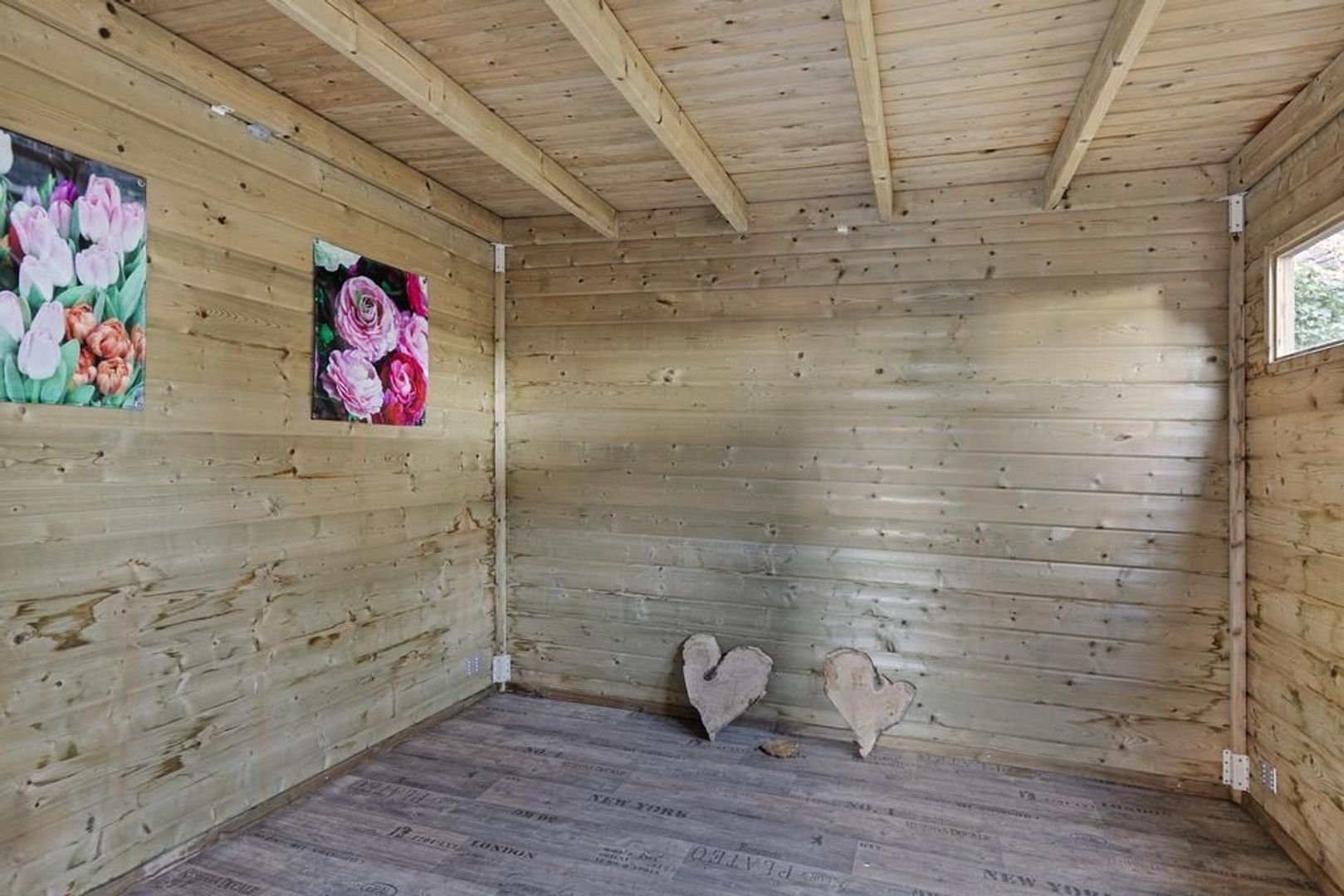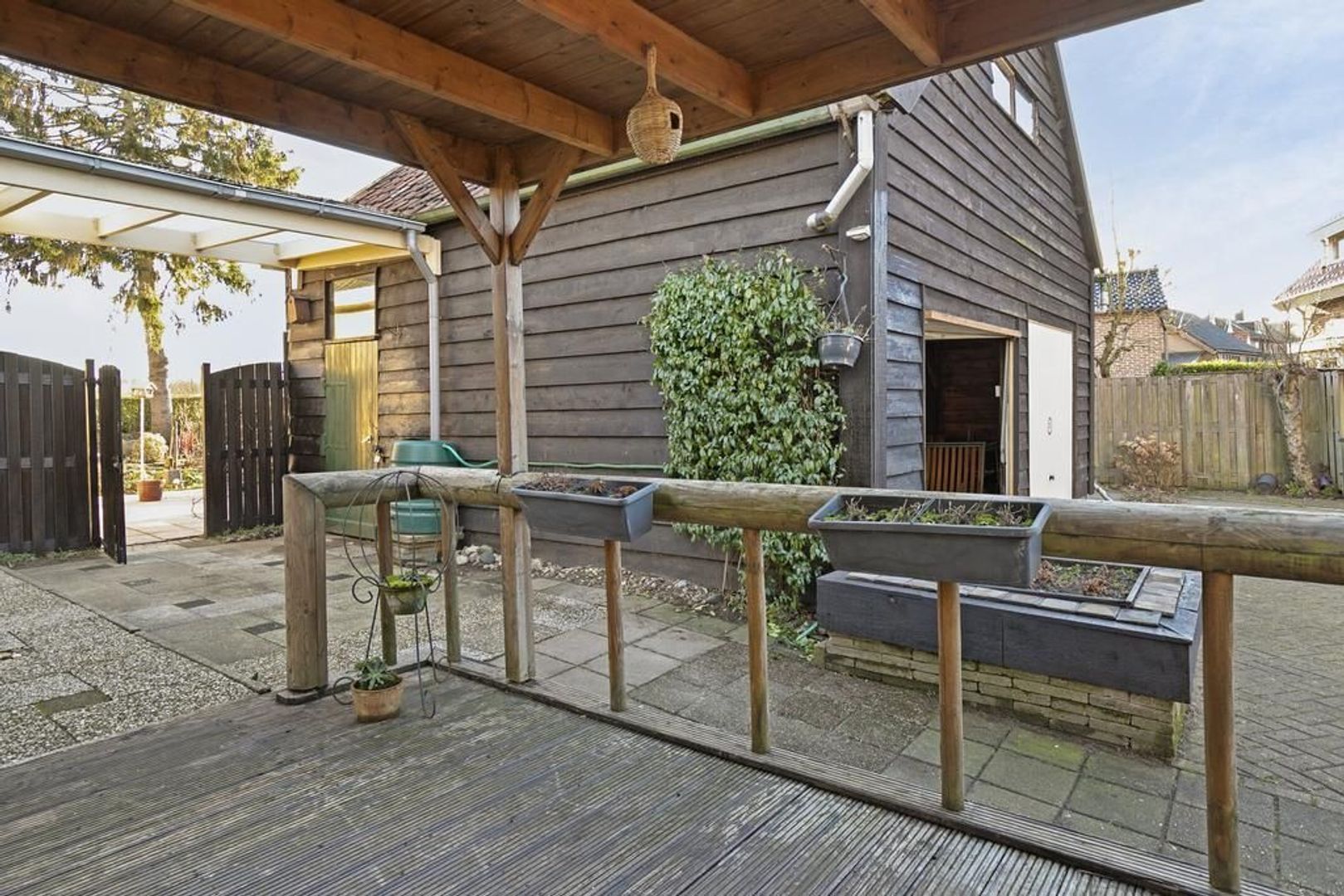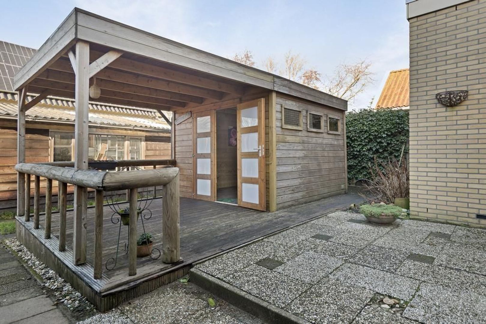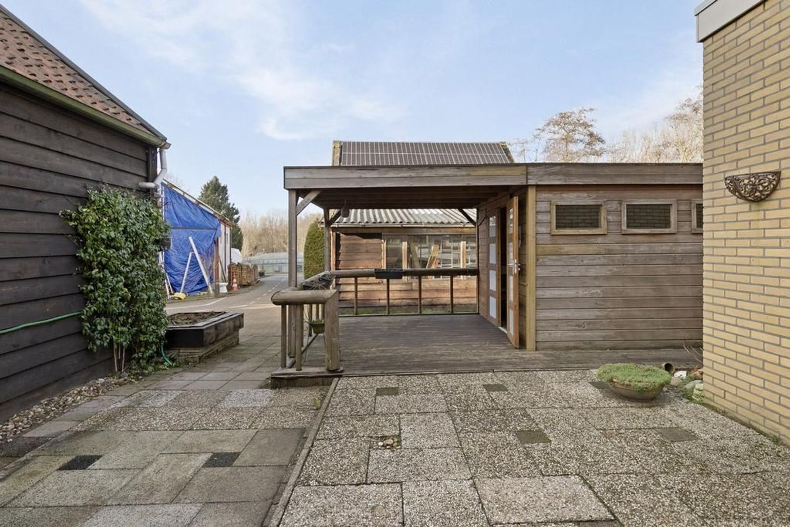 Het terras beschikt over een zonnescherm en verder is er een privé parkeerplaats en een houten overkapping met tuinhuisje. De garage biedt veel opbergruimte en is ideaal voor het stallen van een boot bijvoorbeeld of een andere hobby die veel ruimte vraagt.