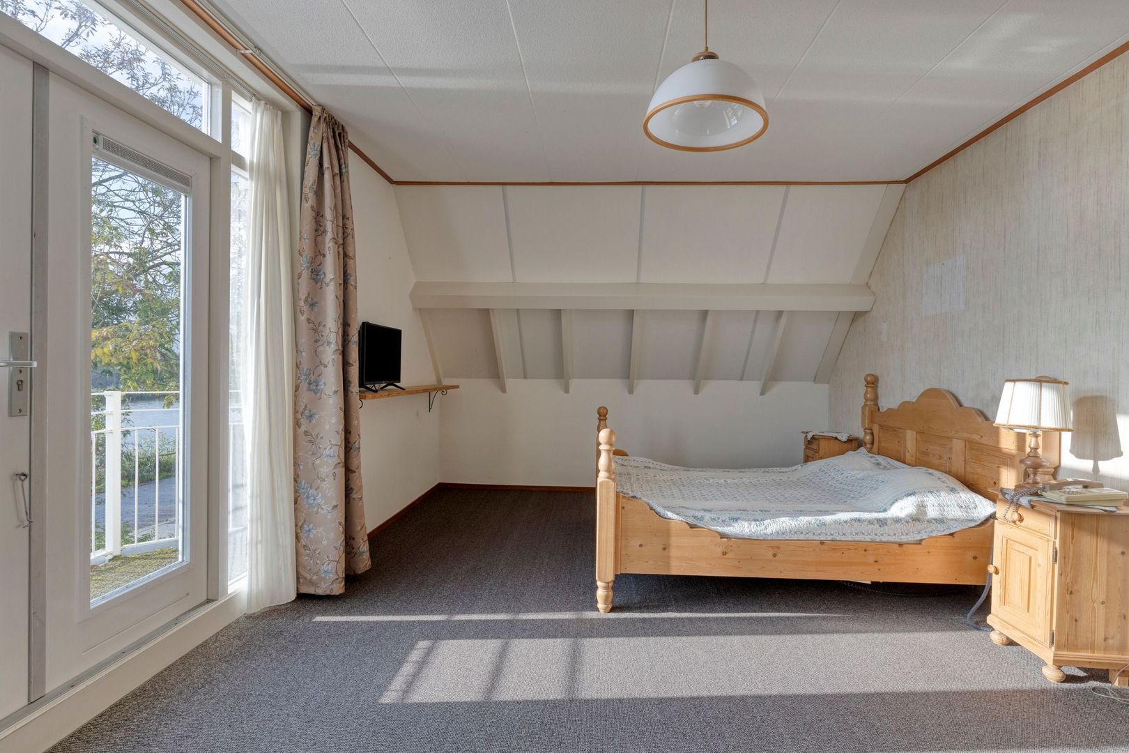 Slaapkamer 1, gelegen aan de voorzijde, met vaste kasten en toegang tot het balkon met prachtig uitzicht over de Rotte.