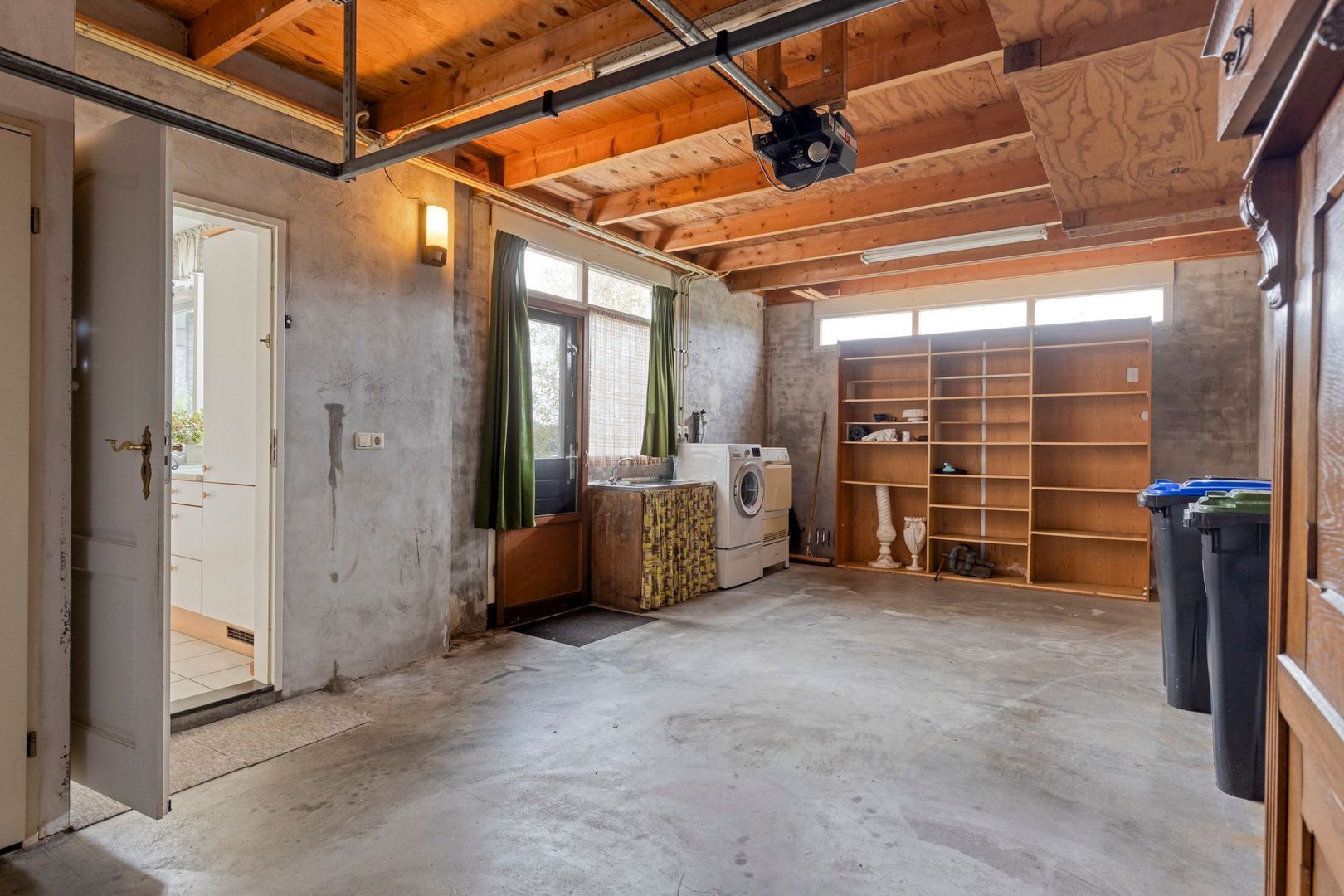Via de keuken bereik je de inpandige garage. Hier vind je de aansluitingen voor de wasmachine en droger en de meterkast. Vanuit de garage is er ook toegang tot de achtertuin.